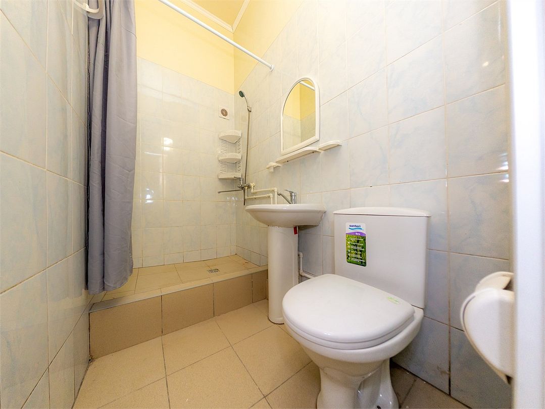 Холодильник, телевизор, вентилятор, душ, санузел.
