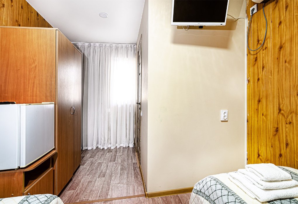 Двухместный номер категории «Эконом». В номере: мини-холодильник, ТВ, вентилятор, с/у, шкаф для одежды.