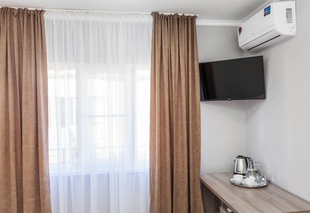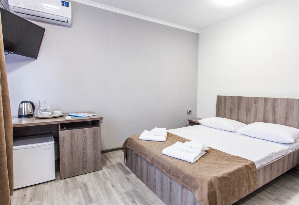 Стандартный номер со всем необходимым. Для вас в номере — санузел, душ, мини-холодильник, ТВ, сплит-система.
