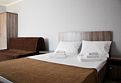 Двухместный номер категории «Стандарт» в спокойных тонах. Для вас в номере: санузел, душ, мини-холодильник, ТВ, сплит-система.