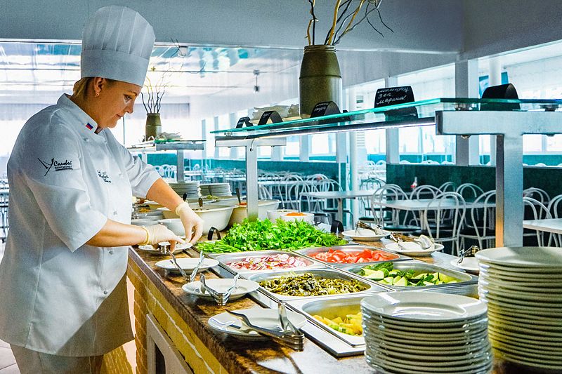 - 3-х разовое питание (завтрак, обед, ужин) по системе «Шведский стол» (комплексное меню при загрузке менее 50 человек)