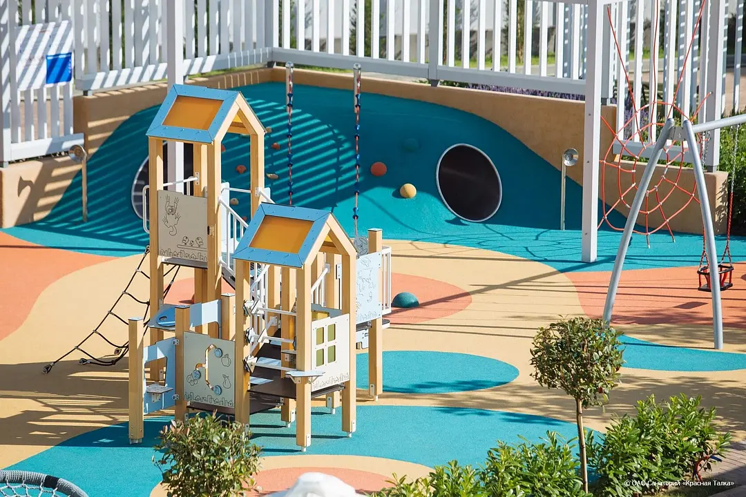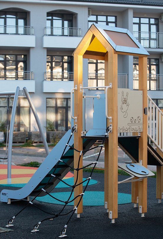 Все элементы выполнены из экологичных, безопасных материалов, устойчивых к климатическим воздействиям. Площадка рассчитана на детей разных возрастов и станет местом, где каждый найдет что-то интересное для себя.