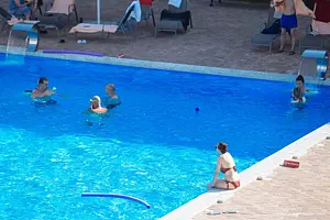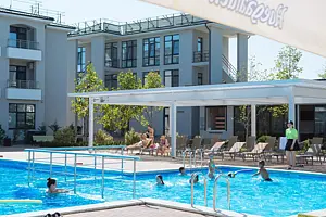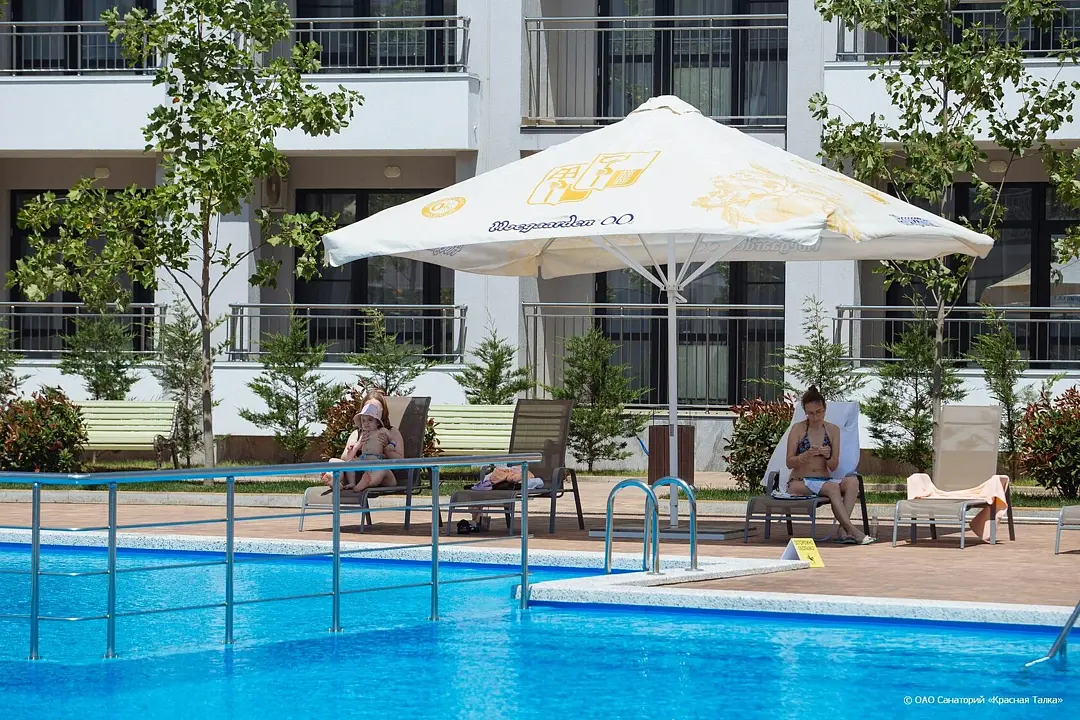 На территории пансионата находится просторный открытый бассейн с подогревом, который обеспечивает комфортное купание в любое время года. Для расслабления гостей предусмотрены два водопада для массажа. Для маленьких посетителей создана специальная зона — детский бассейн, отделённый от основного безопасными перилами для максимальной защиты детей. В центре детского бассейна расположен гейзер, который создает эффект аэромассажа и дарит детям море удовольствия.