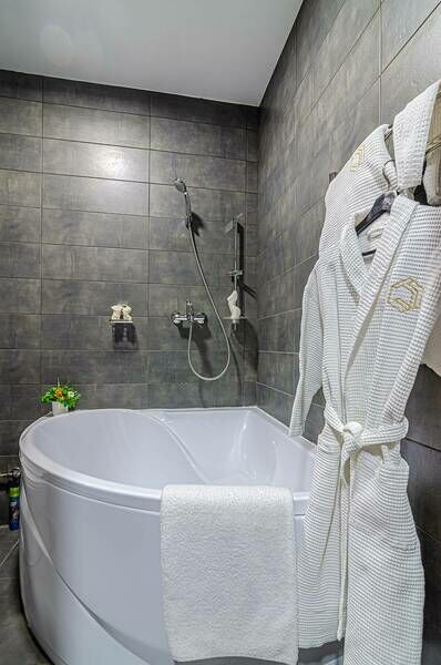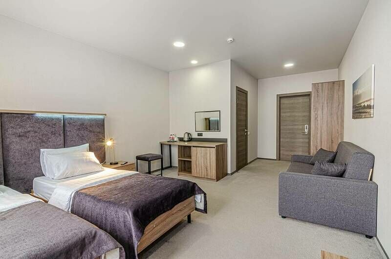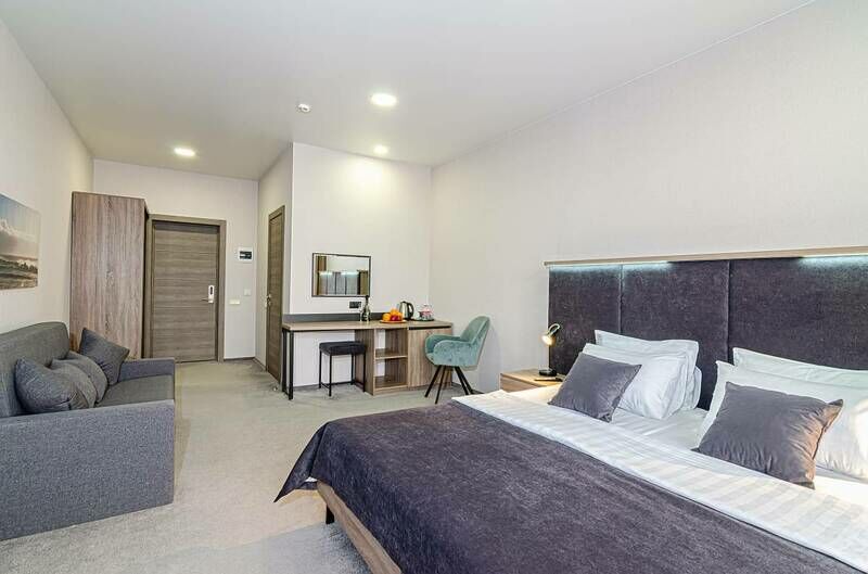 Новое четырехэтажное здание отеля, оформлено в современном изящном стиле. Гостей здесь ожидают комфортабельные номера категории Стандарт, Делюкс, Люкс, рассчитанные на размещение ста человек. Номера оснащены всем необходимым – сплит-системой, удобной, качественной мебелью, бытовой техникой, в санузлах – тапочки, халаты и косметические принадлежности.