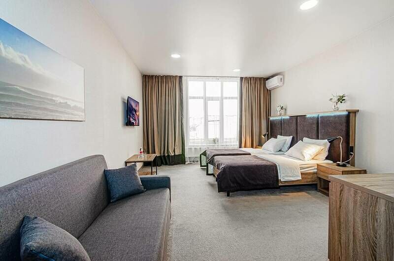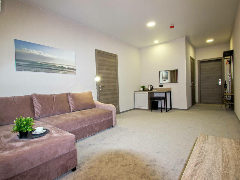 Путешествие с паройЛюбим Анапу всем сердцемОтличный клубный стильный отель. Двухкомнатный люкс. Современный ремонт, все свеженькое, новенькое. Классная ванная комната, есть кухня небольшая. Расположение шикарное. Рядом отличный рынок. Чего там только нет! Море в 15 минутах ходьбы. Выход на волшебные песчаный берег. Нам все очень понравилось, вернёмся с ребёнком летом.