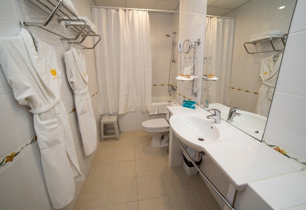 Для проживания постояльцам предоставляются номера категории "стандарт", "студия", "люкс". Во всех номерах гостиничного фонда имеется набор необходимой мебели, сейф, кондиционер, телевизор, холодильник, фен, туалетный набор, санузел с ванной или душем. В комнате возможно разместить дополнительно одно место. Питание предоставляется трехразовое, по системе "шведский стол".