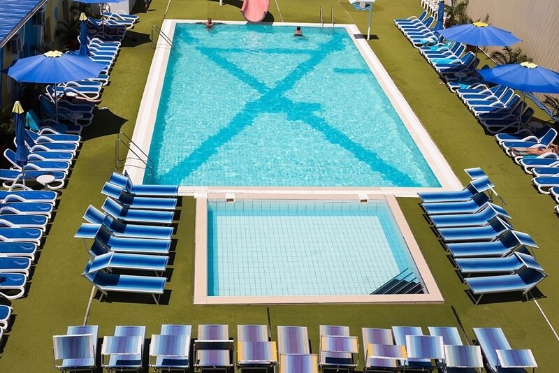 Тип бассейна: открытый бассейнРядом с бассейном: душ, шезлонги, зонтики, бар у бассейнаОткрытый (летний) бассейн расположен внутри комплекса, в окружении зданий пансионата, которые защищают зону купания от ветров. В летний период этот бассейн является центром притяжения гостей пансионата. Здесь расположены: удобная зона принятия солнечных ванн, водная горка, душевые стойки.