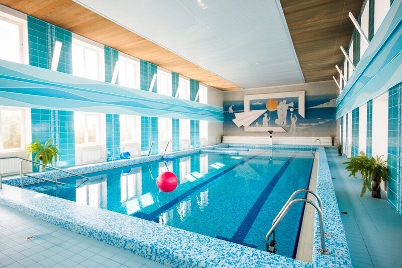 Читать полностьюКрытый бассейн пансионата расположен на втором этаже лечебного корпуса, в капитальном здании. Бассейн функционирует сезонно, открыт для посещения весной, осенью и зимой, предназначен для свободного посещения и групповых занятий гидрокинезотерапией (лечебной подводной гимнастикой). Во время свободного посещения периодически включается установка, создающая эффект жемчужных ванн.