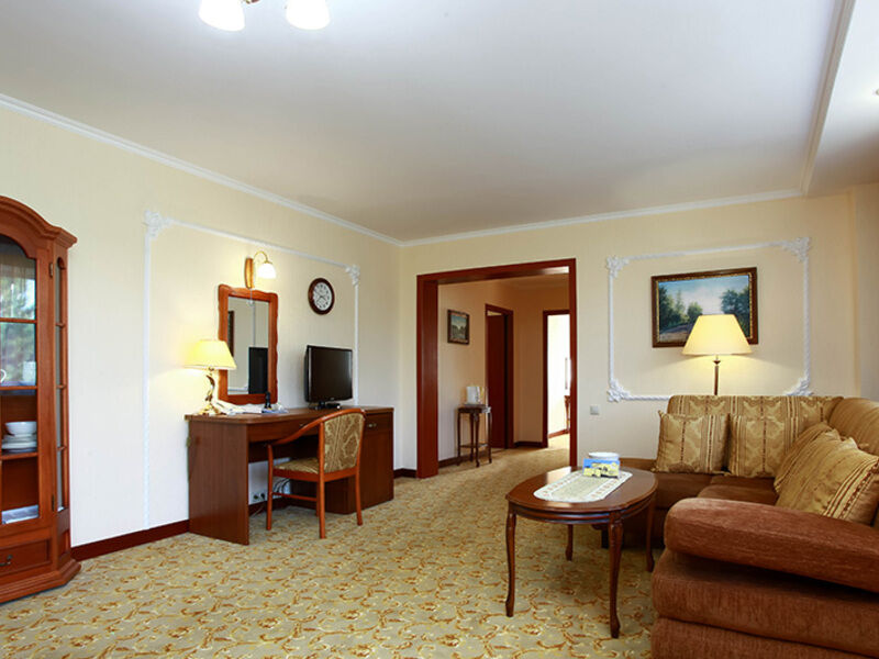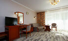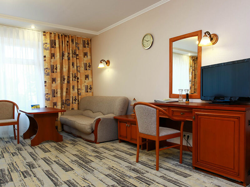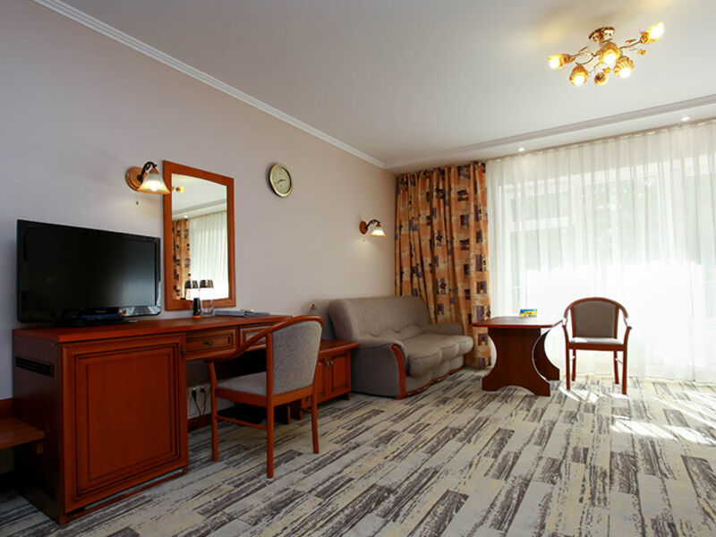 Хорошие процедуры (ванны, грязи, как заявлено), великолепный спа-комплекс с разными видами бань, бассейном-джакузи, спортзал. Отличный бассейн под открытым небом. Не очень большая территория санатория, зато большая зона парковки. Есть детская площадка, теннисный корт. Вкусные кислородные коктейли и полезные чаи. Отдельные чаепития по вечерам со сладушками. Хороший ресторан - шведский стол, питание неплохое для санатория. Но есть несколько блюд, фрукты, салаты. Раньше было спиртное, сейчас уже нет.