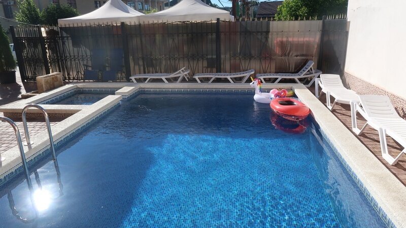 Тип бассейна: открытый бассейн, детский бассейнРядом с бассейном: шезлонги, зонтикиРазмеры: 2 x 2 мПлощадь: 4 м²Стоимость