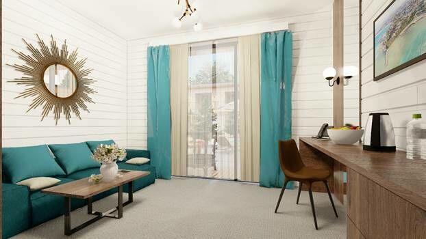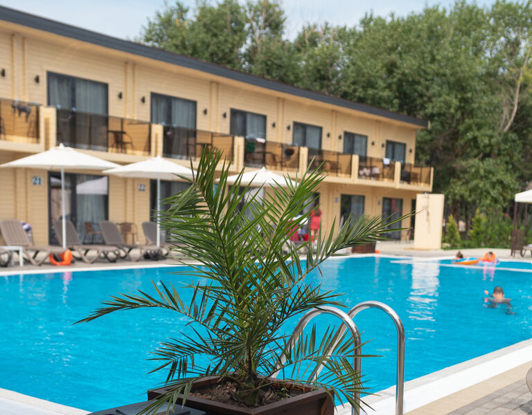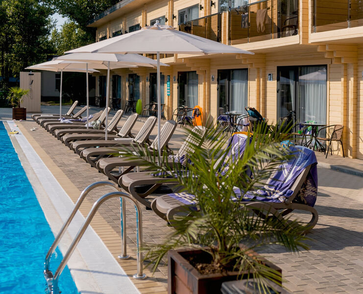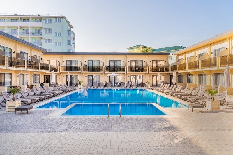 Путешествие с семьейОтличный вариант для семейного отдыхаКак уже многие писали коттеджи находятся на территории советского пансионата, но если подробнее ознакомиться с описанием и отзывами заранее-это не будет сюрпризом)) в общем, это нас не удивило. Вообще территория всего этого советского пространства достаточно большая и вечером приятно прогуляться среди сосен, учитывая, что в большинстве отелей анапы территории нет совсем. В разных локациях есть небольшие детские площадки. На пляже чудесный атомсферный бар. Ассортимента на шведском столе мало, но выбрать есть из чего и все достаточно вкусное. В качестве семейного отдыха, нам показалось идеально: бассейн сразу у коттеджей, людей не много, т.к. бассейн для жителей коттеджей отдельный. Море близко, пляж большой и чистый, лежаки, зонтики все имеется. Шумоизоляция в коттеджах хорошая: не слышно ни шума с бассейна, ни соседей. Сам коттедж 1 в 1 как на фото: все новое, стильное. Обслуживанием очень довольны: полотенца нам меняли каждый день, убирались тоже. Причём мы никого не просили отдельно об этом, поэтому не знаю почему некоторые пишут об обратном.. анимация детская была только вечером, это, наверно, минус, но детям вообще хватало бассейна и моря))) единственный существенный минус, который прям испортил впечатление немного, это заселение: мы приехали чётко к двум часам, а сотрудница была как раз на обеде в это время, и она одна, кто может заселить. По ее возвращению через 40 минут🤦♀️ она еще полчаса нас заселяла, при этом ничего толком не рассказав о расписани, о расположении. В итоге, мы с маленьким ребёнком были вынуждены час простоять на заселении чтобы попасть в свой коттедж и потом отдельно вызывать администратора чтобы ознакомили нас с территории. Этот процесс явно хромает для такой цены и снижает уровень отеля. Причём друзья заселялись на следующий день и история повторилась, так что это у них в порядке вещей. В остальном, отдыхом остались очень довольны, положительные впечатления перекрыли разочарование от первого знакомства)))