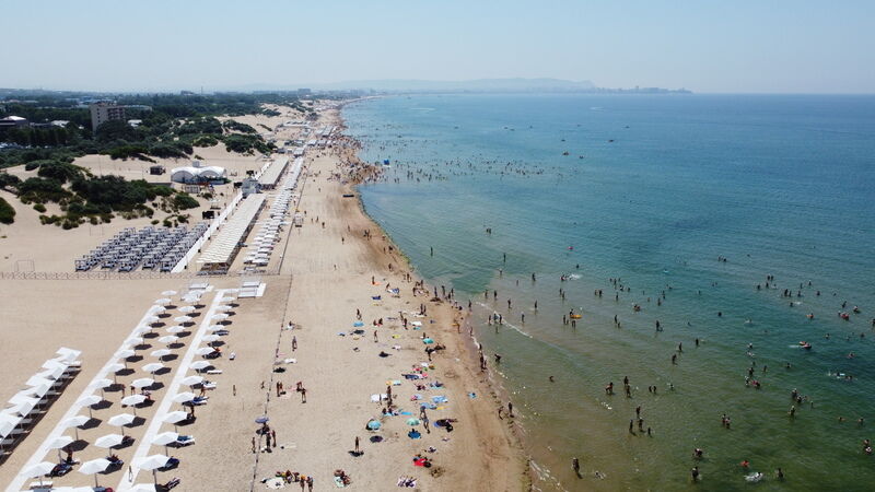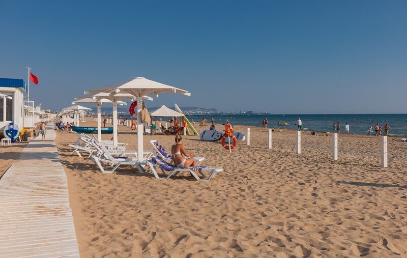 Здесь, на песчаном берегу, оборудован современный пляж. Берег усыпан мелким песком. Для удобства установлены лежаки и тенты. Ароматы южных роз, соснового бора и морского бриза создают особую атмосферу!