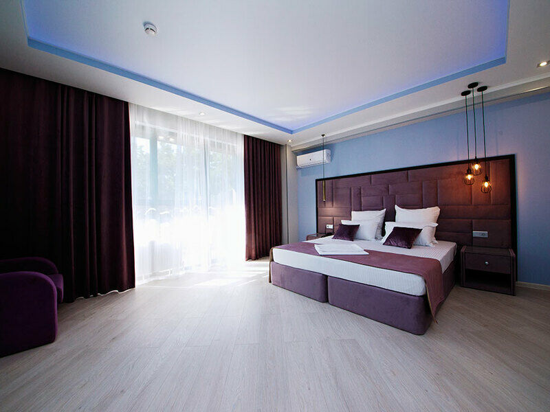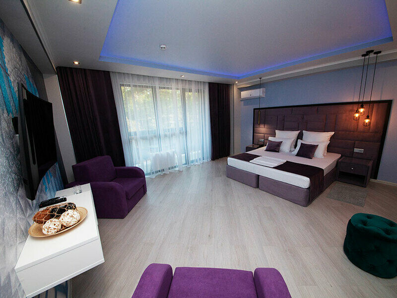 Стойка регистрации отеля работает круглосуточно. На территории предоставляется бесплатный Wi-Fi. За дополнительную плату предоставляются места на собственной парковке. Рядом с отелем находятся многие популярные места отдыха, среди которых Центральный пляж и пляжи «Малая бухта» и «Золотая бухта». В шаговой доступности тихое место для отдыха и прогулок парк им. Гудовича, фонтан Влюбленных, детский парк развлечений с аттракционами и каруселями, многочисленные кафе, рестораны, магазины, сувенирные лавки.