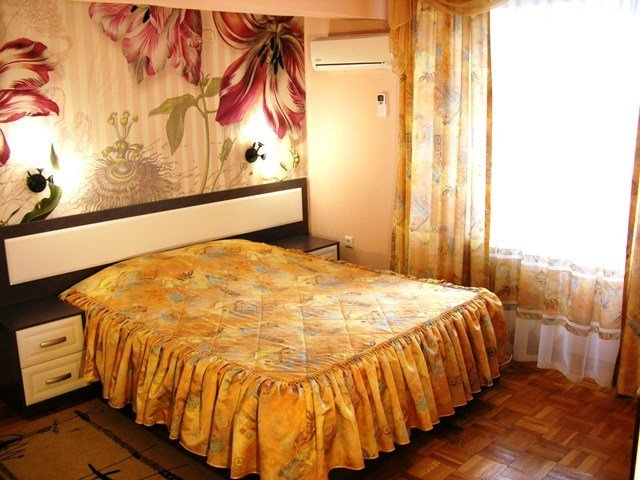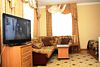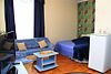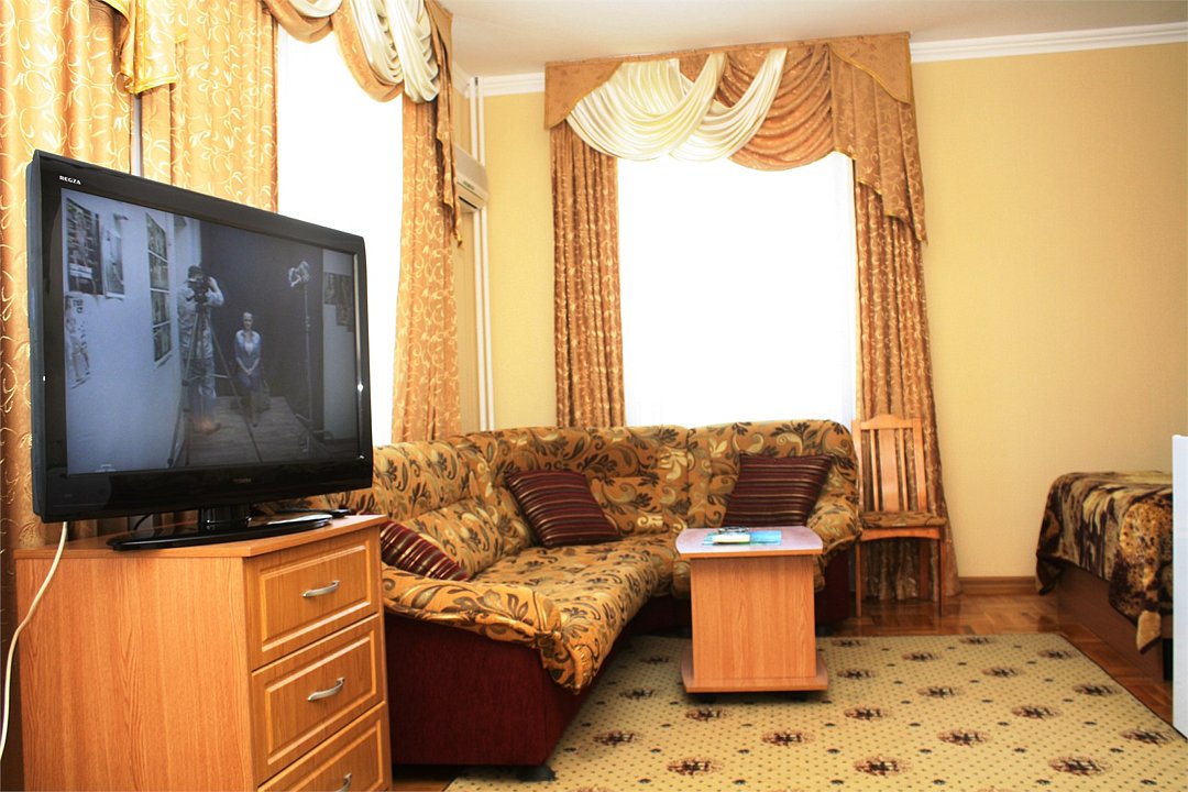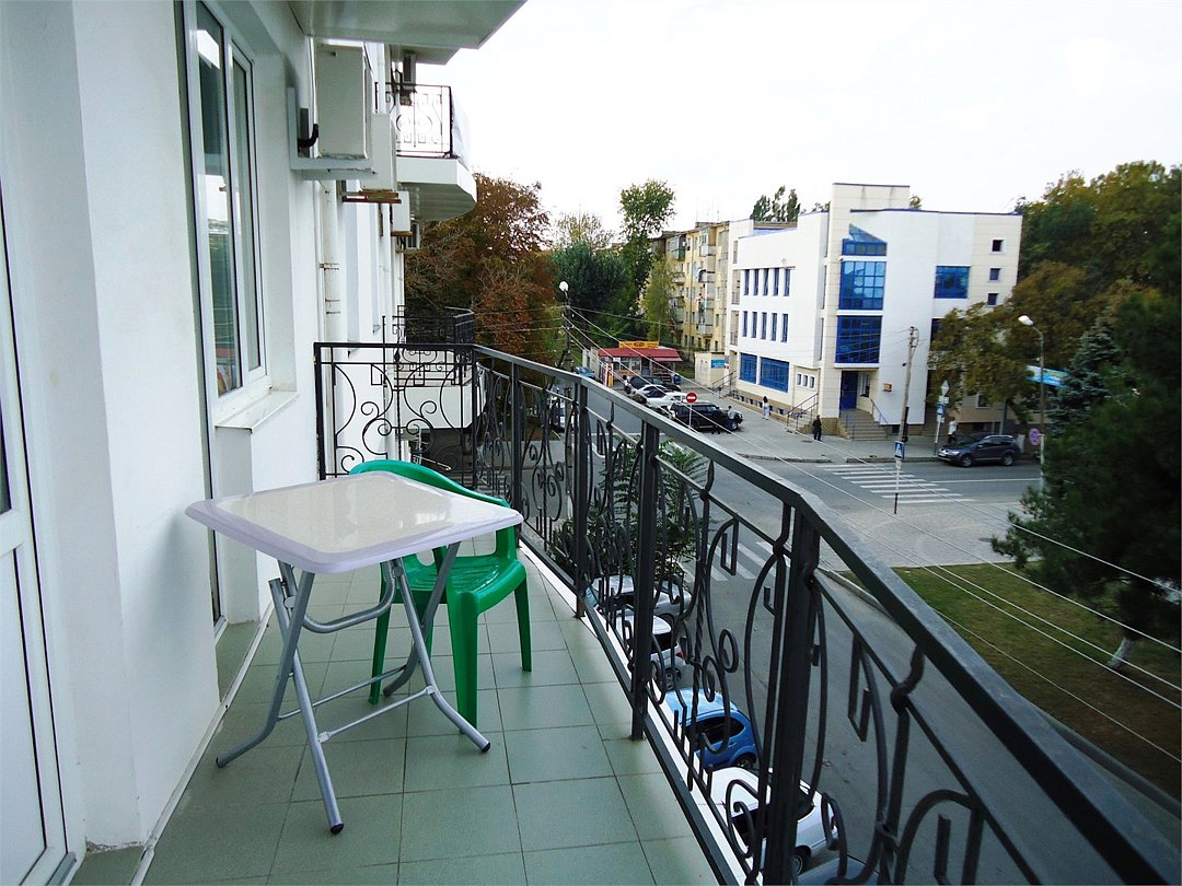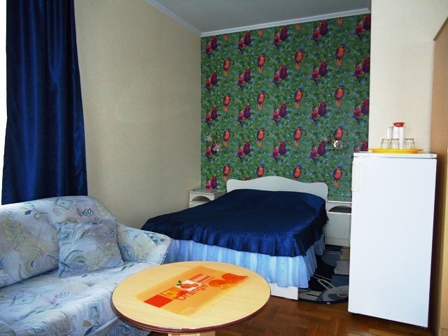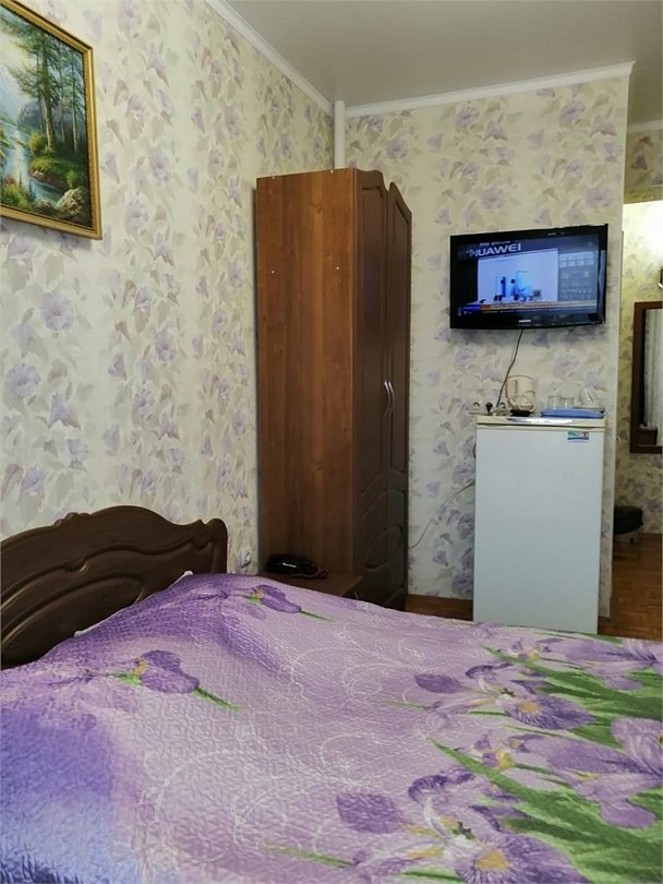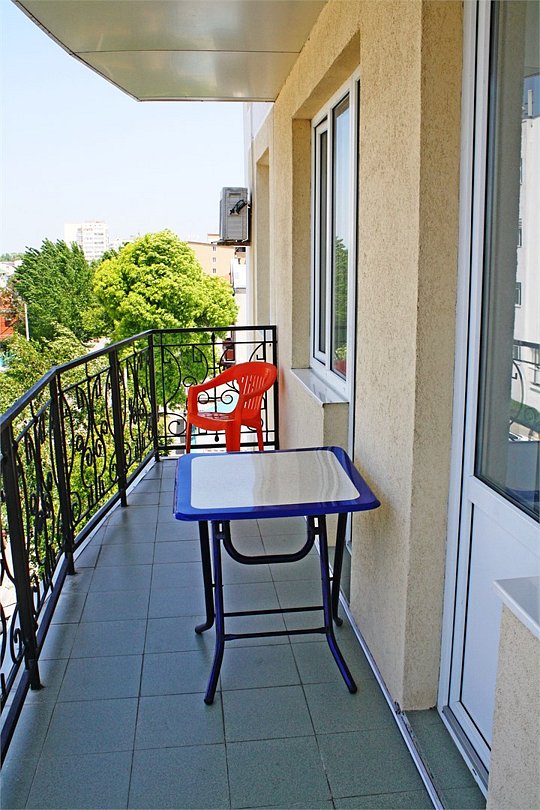 Номер с балконом на 4 этаже. (лифта нет) Подходит для семьи из 2 - 6 человек, которых не пугает пеший подъём по лестнице на 4 этаж. Спальные места: 2 двуспальные кровати в разных комнатах. В большой комнате раскладной диван. Можно дополнительно поставить детскую кроватку. Номер состоит из двух раздельных комнат с отдельным входом из небольшой прихожей. В каждой комнате свой кондиционер, холодильник, телевизор, кровать. Это очень удобно, если Вы приехали с друзьями или с детьми. Дети могут спать в отдельной комнате, смотреть детские передачи по телевизору. Кондиционер, в детской комнате, можно включить на комфортный для них режим. В то же время, родители в своей комнате могут смотреть взрослые передачи и включить кондиционер на более прохладный режим (летом). Микроволновка, гладильная доска, утюг и кулер находятся на 4 этаже в свободном доступе. Размещение для ребенка до 6 лет-бесплатно.Услуги и удобства