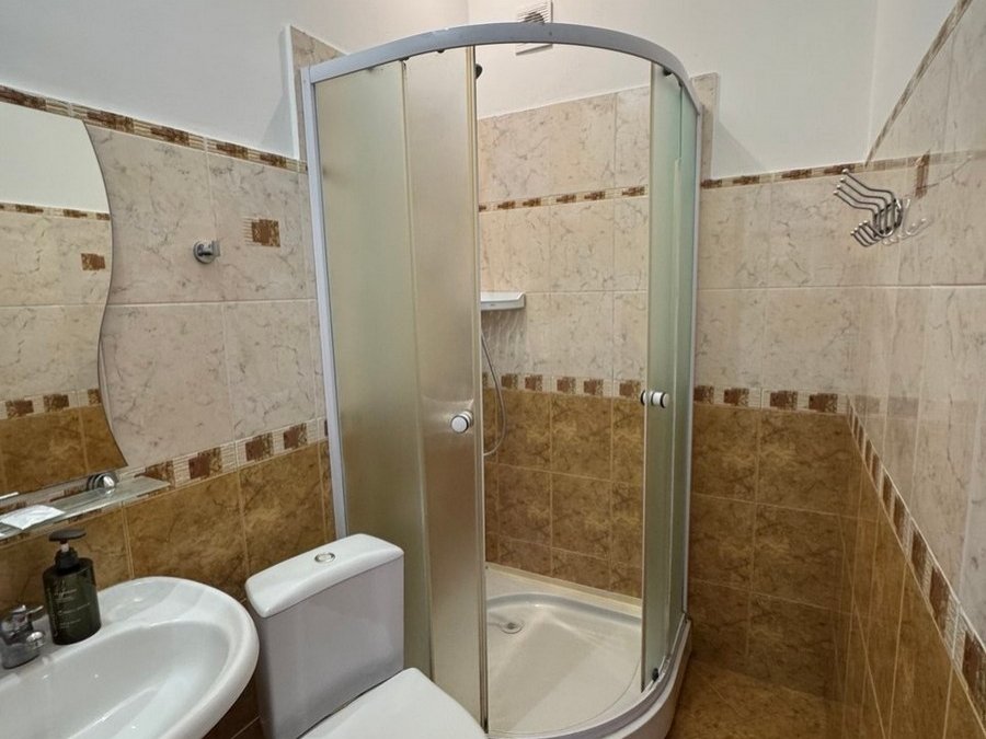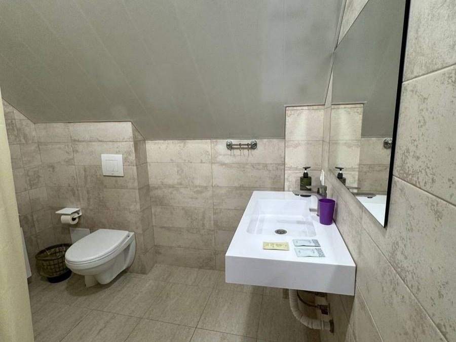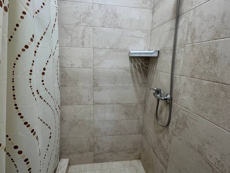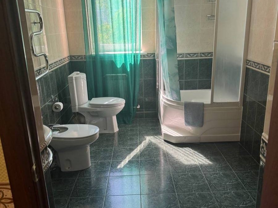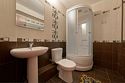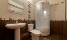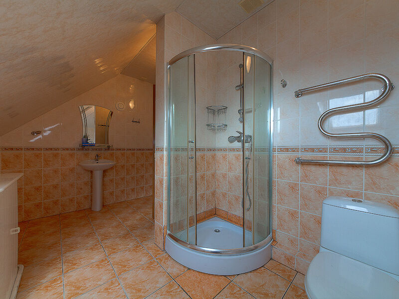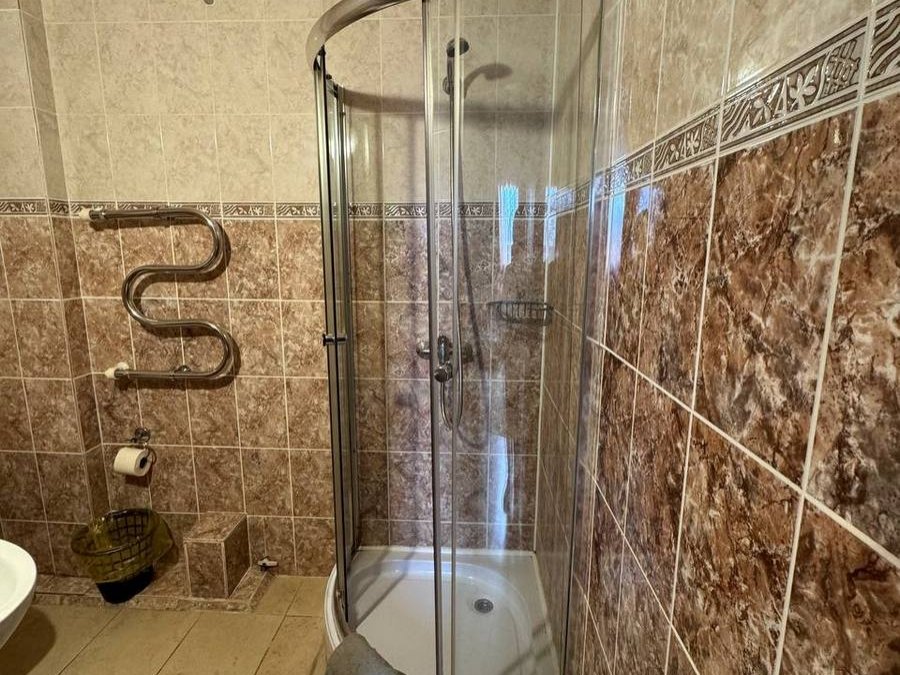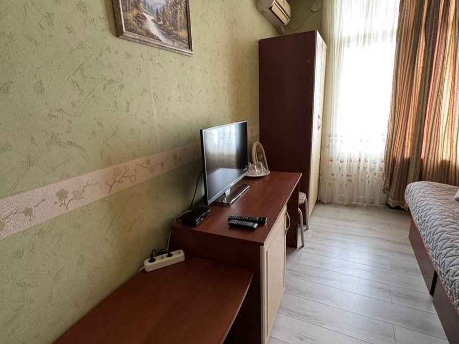 Короткий отпуск с друзьямиТипичный гостевой домАтласные занавески, покрывала и голубые стены. Дверь в номер с витражом))) в ванной душевая кабина и жидкое мыло. Завтрак был включен в стоимость проживания - вареные яйца, яичница, гречневая каша, запеканка с фруктами, сыр, колбаса, консервированные персики, хлопья, чай и кофе. Есть гладильная доска и утюг, на 1 этаже кулер с водой. Персонал отзывчивый, за соседней дверью минимаркет.
