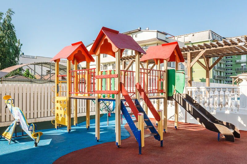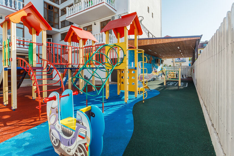 Детская площадка маленькая - нет горки (сломана). Шумно, но это же курорт - не все с детьми в 21:00 спят, многие отрываются... Вид из окна средний - есть недострой, но мы не сидели и не смотрели на него, а гуляли на улице или спали... Народ, будьте проще!!!