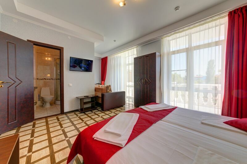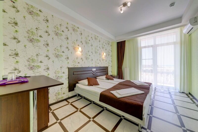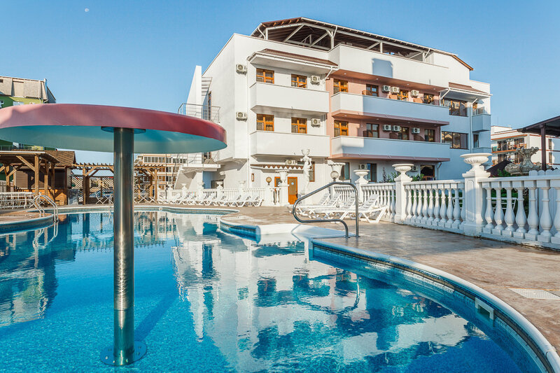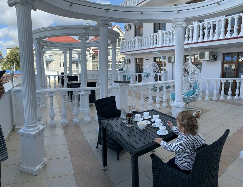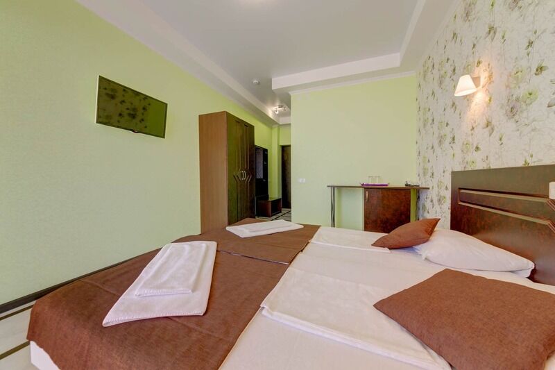 Отель расположен в тихом, уютном, нешумном месте в курортном поселке Витязево, в 300 метрах от побережья Черного моря. Пляж широкий, песчаный. Море неглубокое и хорошо прогревается.
