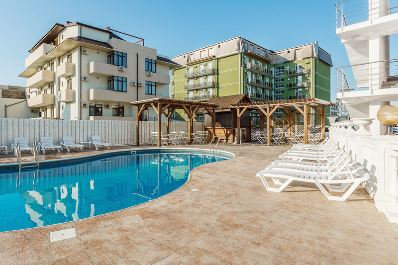 Бассейн хороший, тёплый, лежаков не много, но мы ехали на море, а в бассейн ходили пока самый маленький спал.