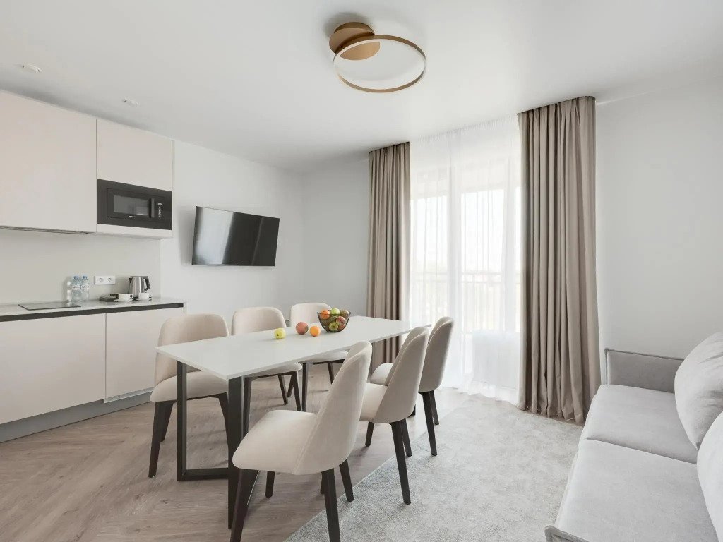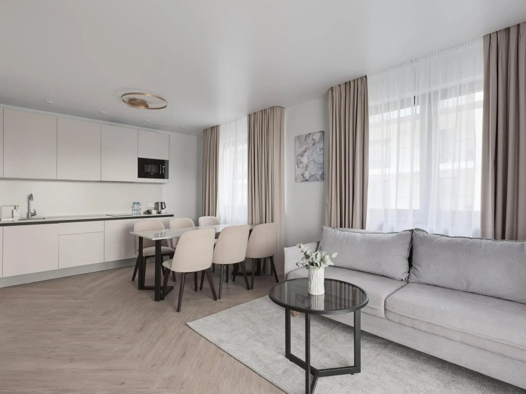 Для размещения гостей апарт-отель предлагает апартаменты разных категорий с разной площадью: от небольших апартаментов до трёхкомнатных апартаментов, площадь которых более 80 кв. м. Все апартаменты, кроме однокомнатных типа «Промо», оборудованы кухонным гарнитуром со встроенной техникой, есть посуда для приготовления и приёма пищи.