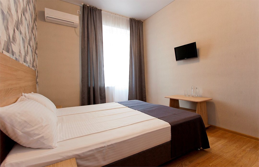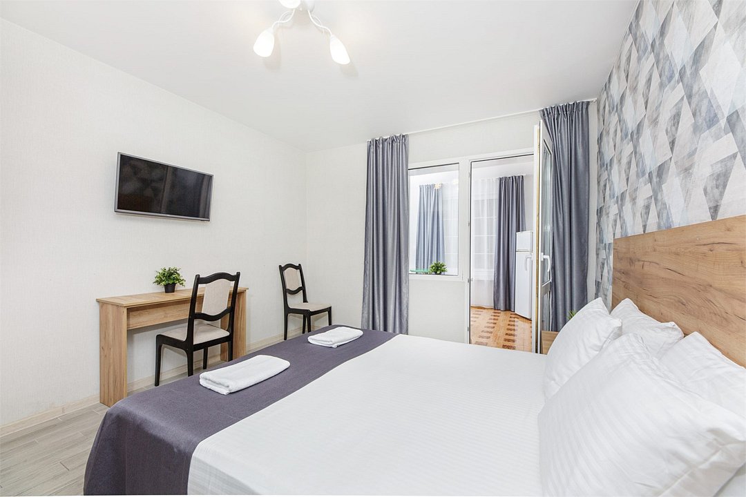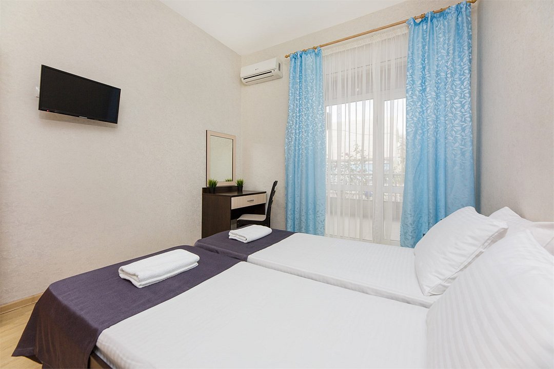телевизор, Wi-Fi, холодильник, кондиционер, банные полотенца, балкон, две односпальные или большая двуспальная кровать, раковина, душ, вид во двор, туалет, цифровое тв, без питомцевВ номере