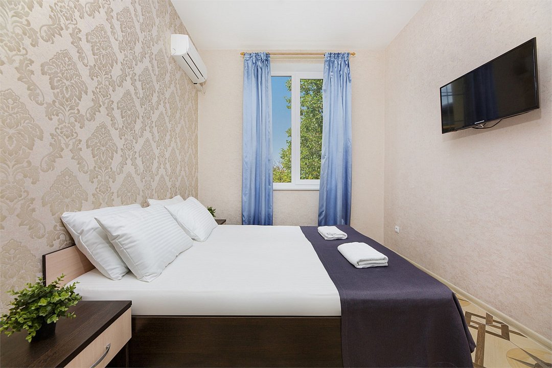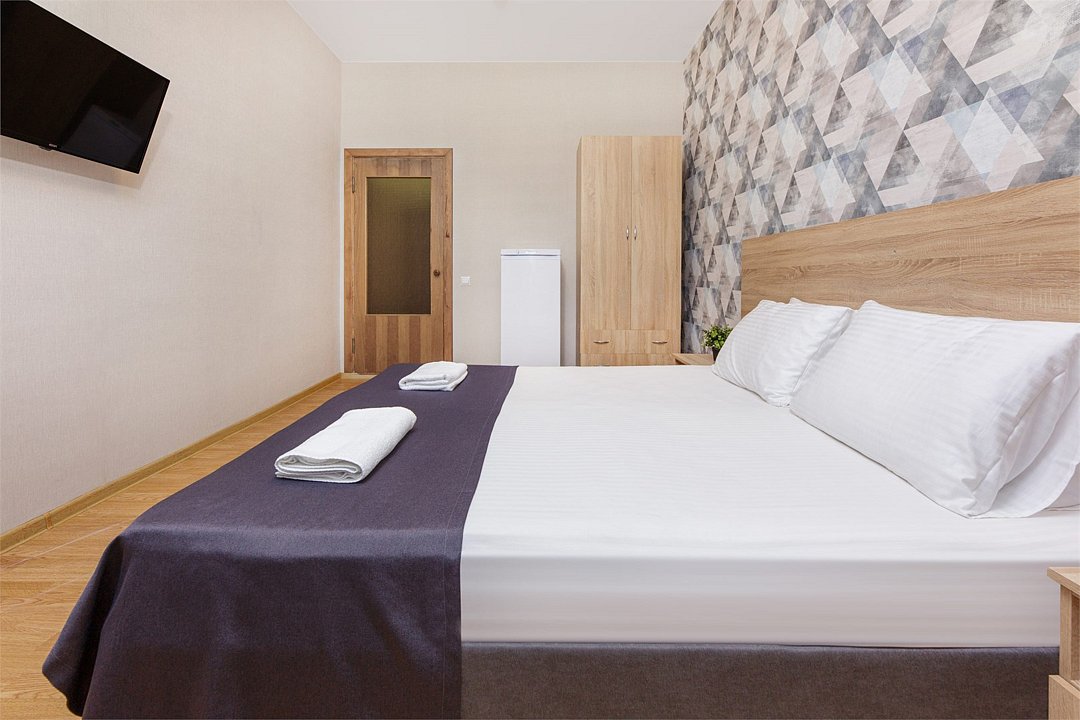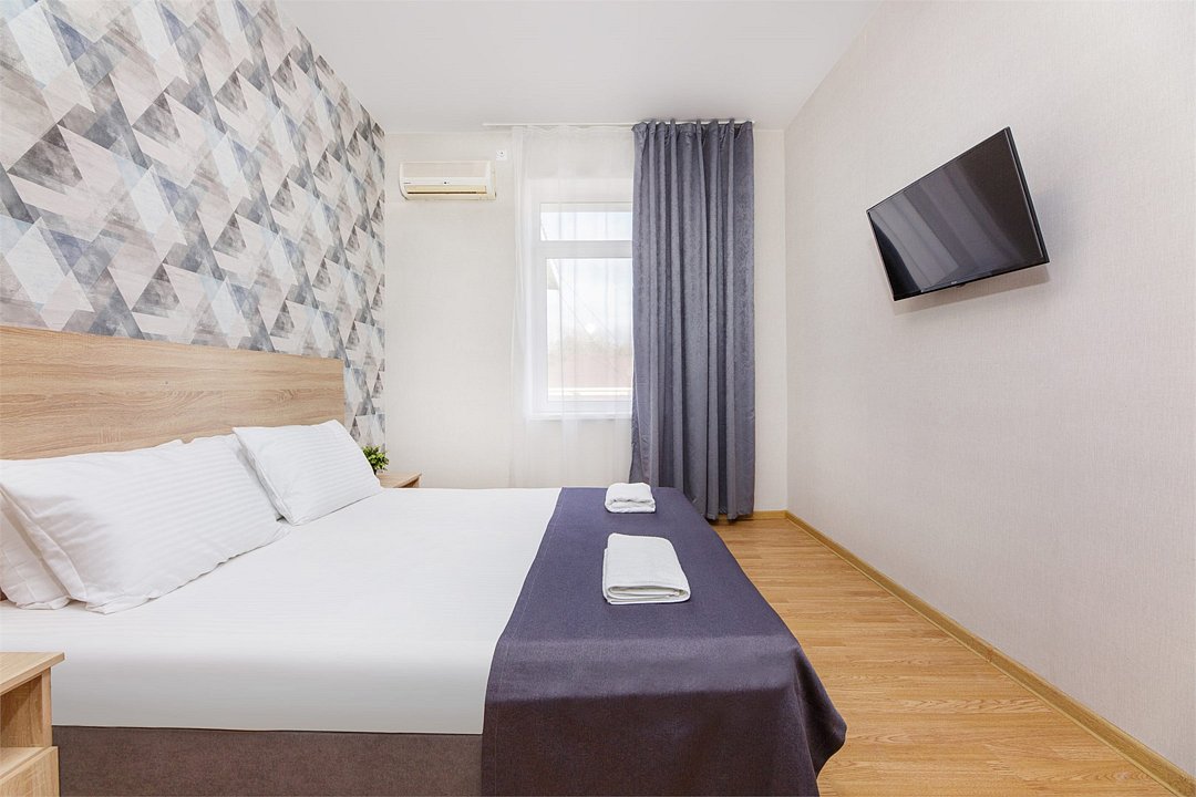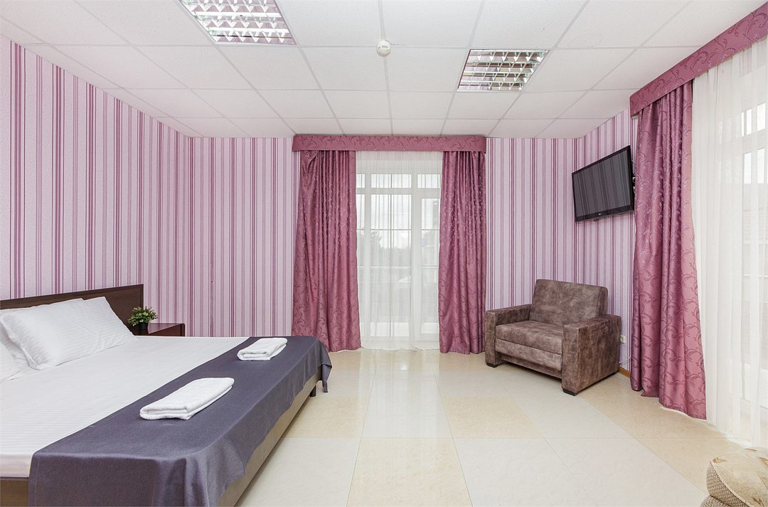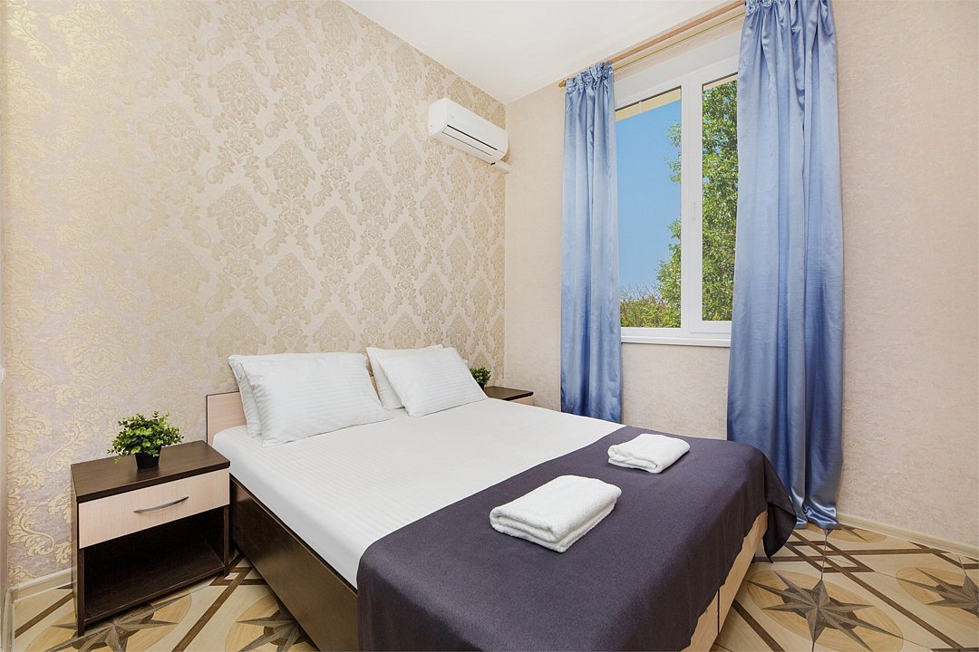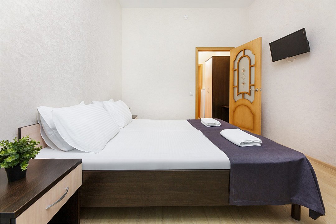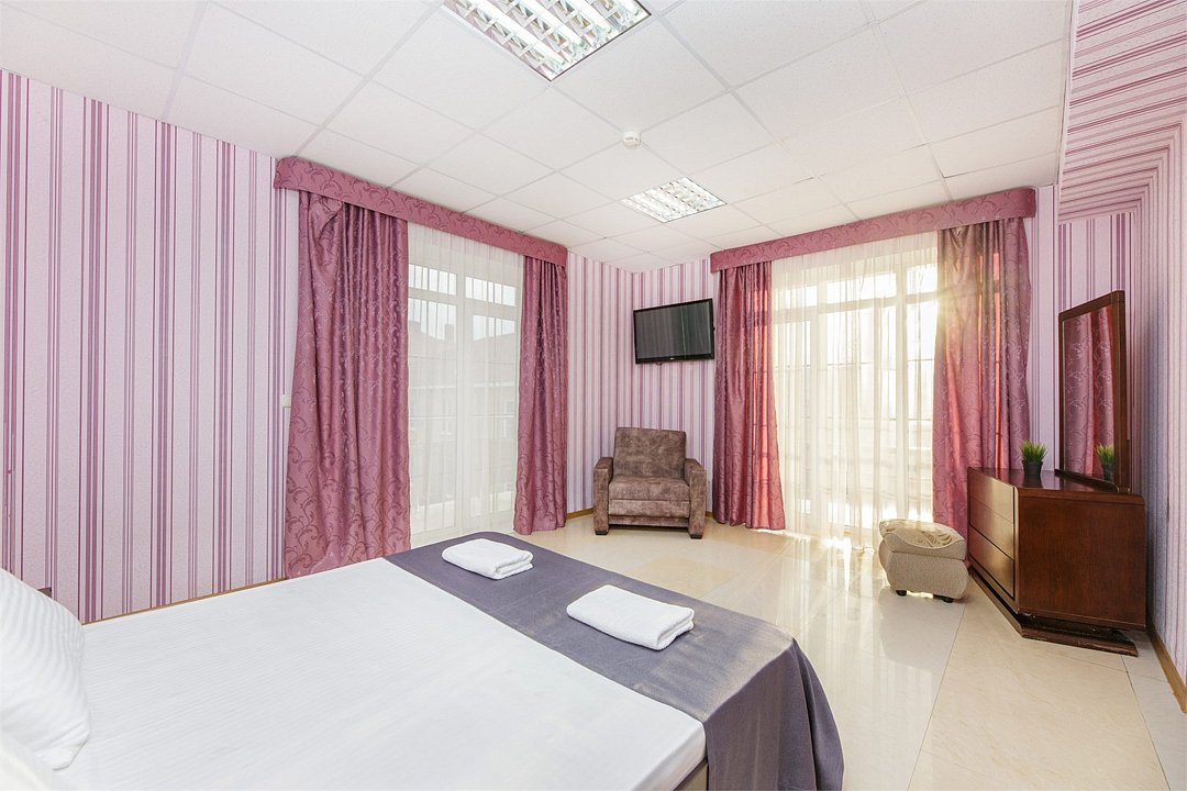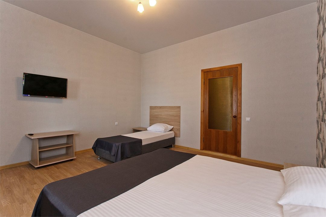 Номера категории четырех-местный двух-комнатный расположены в 2 корпусе и оснащены всем необходимым для комфортного отдыха. односпальная и двуспальная кровати диван-кровать Холодильник ТВ Wi-Fi Сплит-система Туалетный столик ,обеденный стол С/у с ванной Комплект полотенецУслуги и удобства