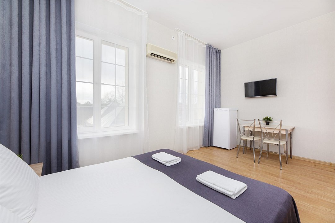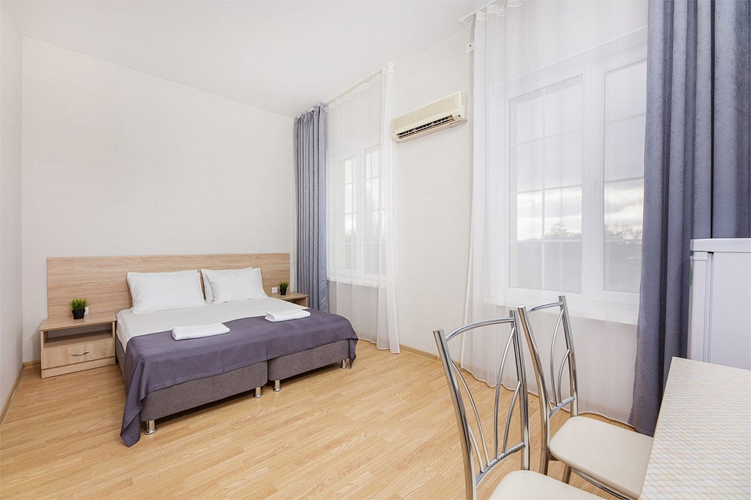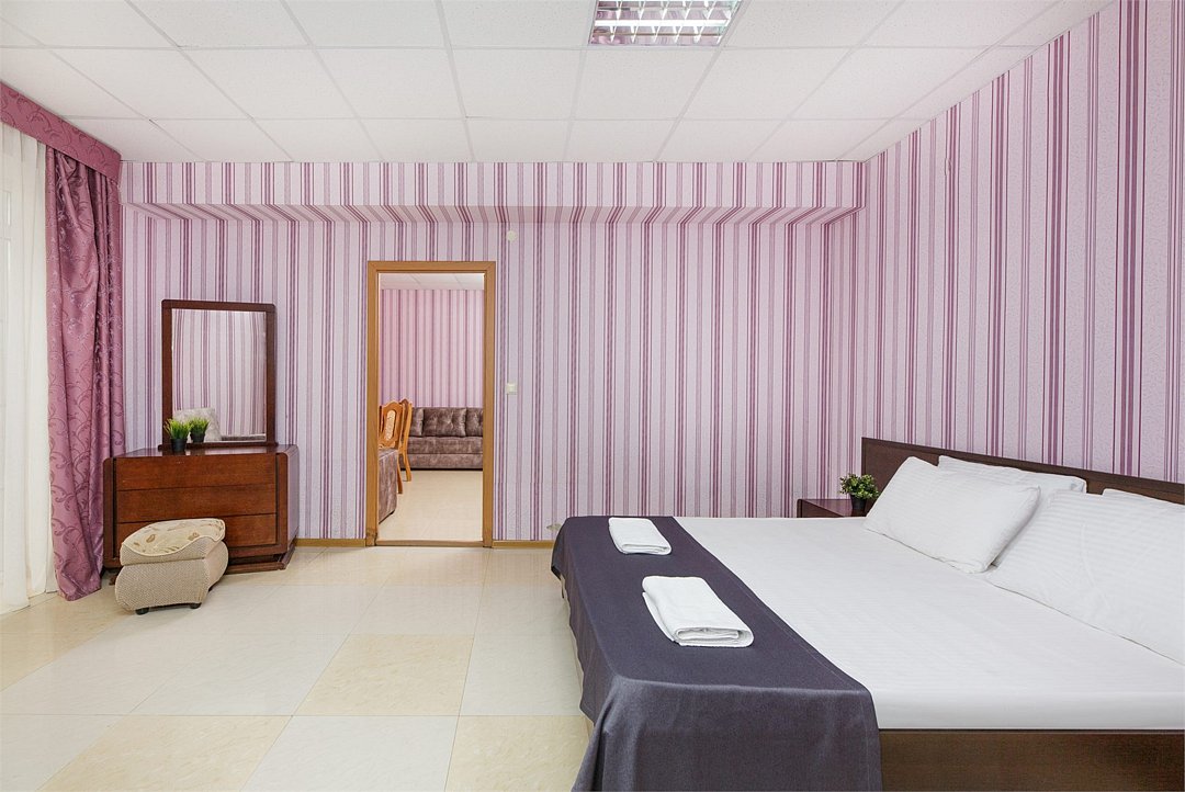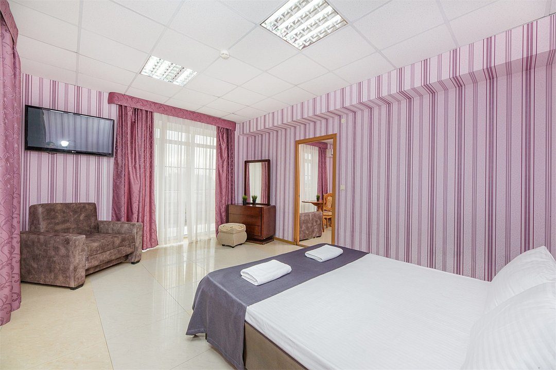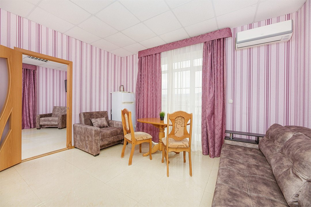 Номера категории :2-х местный 2-х комнатный Апартамент располагаются в 4 корпусе. Просторный двухкомнатный номер позволяет комфортно разместиться всей семье. В номере имеется все необходимое для комфортного отдыха. Двуспальная кровать + диван Доп. место по запросу С/у с душевой кабиной Холодильник ТВ Wi-Fi Сплит-система Стол и стулья Туалетный столик Комплект полотенецУслуги и удобства