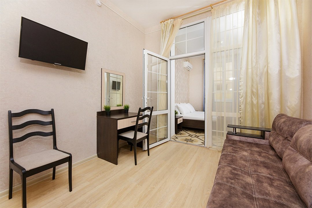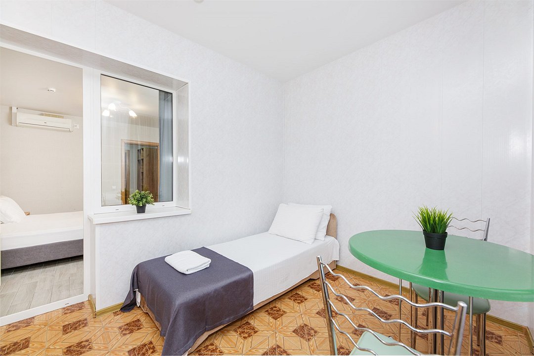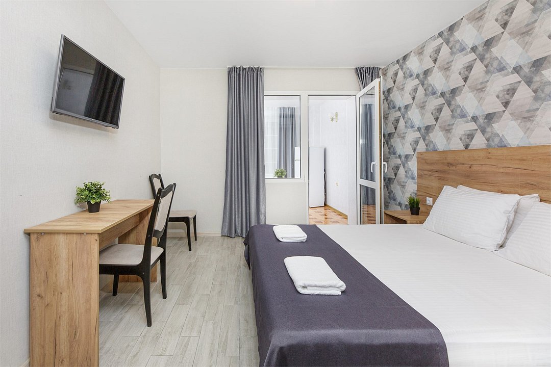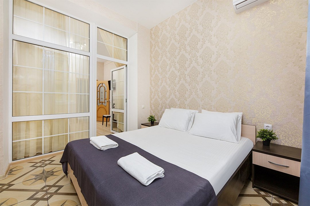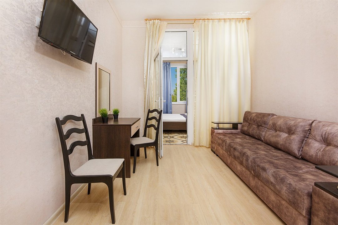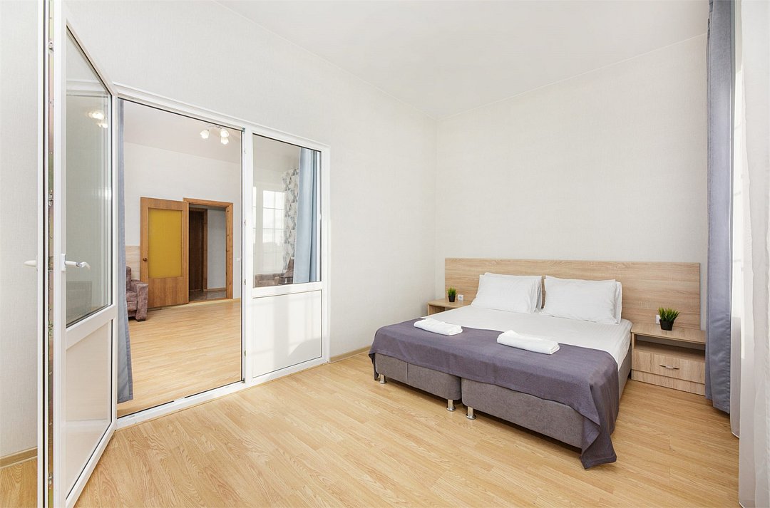 Номера категории :2-х местный 2-х комнатный Апартамент располагаются в 4 корпусе. Просторный двухкомнатный номер позволяет комфортно разместиться всей семье. В номере имеется все необходимое для комфортного отдыха. Двуспальная кровать + диван Доп. место по запросу С/у с душевой кабиной Холодильник ТВ Wi-Fi Сплит-система Стол и стулья Туалетный столик Комплект полотенецУслуги и удобства