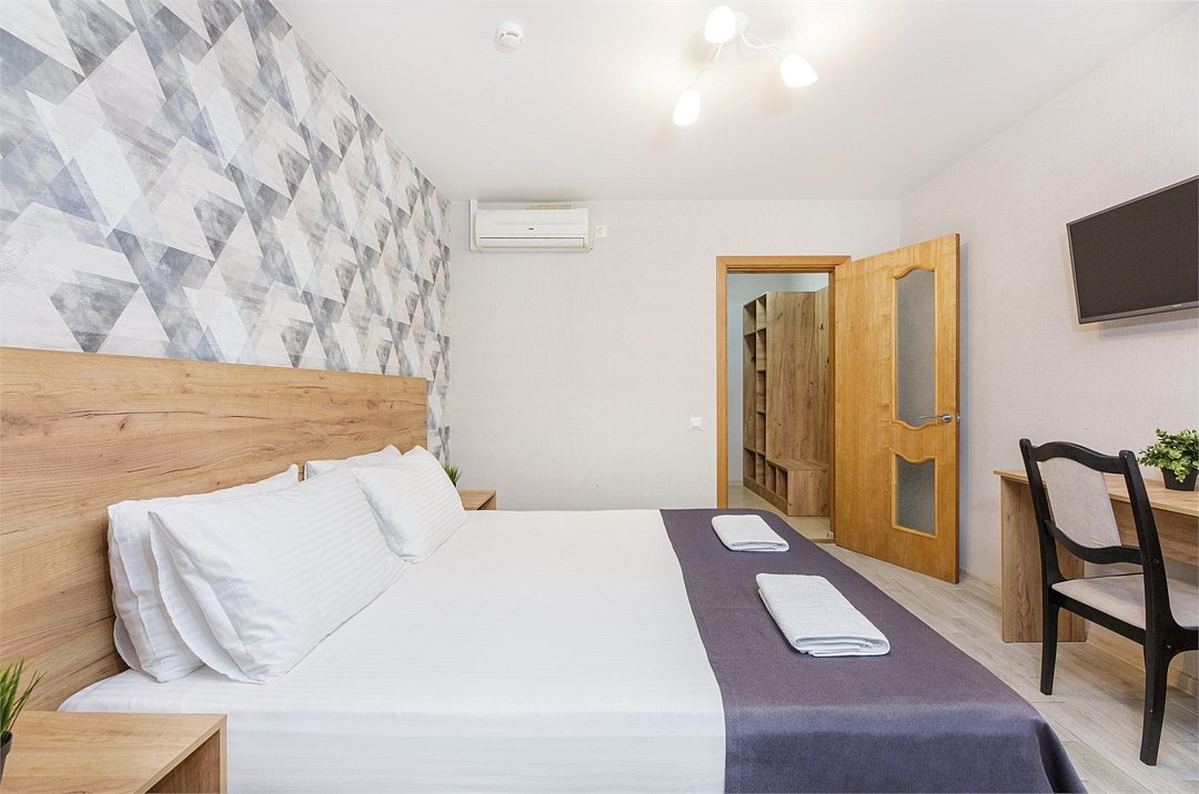 телевизор, Wi-Fi, холодильник, кондиционер, банные полотенца, две односпальные или большая двуспальная кровать, стулья, шкаф для одежды, письменный стол, зеркало, раковина, душ, туалет, цифровое тв, диван-кровать, раскладной диван, пуфик, без питомцевВ номере