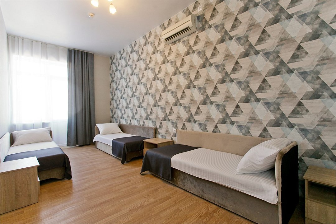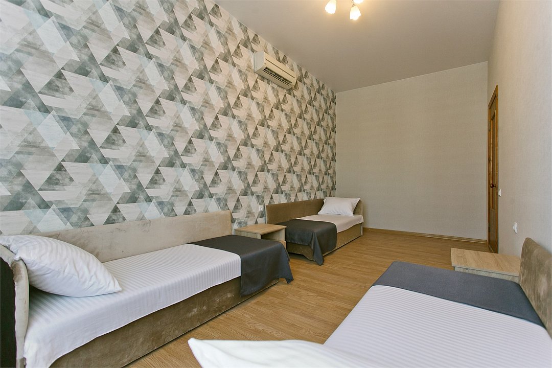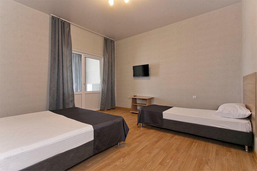 телевизор, Wi-Fi, холодильник, кондиционер, банные полотенца, балкон, двуспальная кровать, односпальная кровать, раковина, душ, три односпальные кровати, вид во двор, туалет, цифровое тв, внутренний телефон, без питомцевВ номере