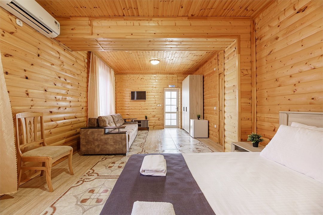 Номера в 1 корпусе и оснащены всем необходимым Телевизор ,Холодильник Wi-Fi,телевизор Две односпальные кровати и одна двуспальная Тахта Вид на территорию отеля /лоджия Сплит-система Туалетный столик С/у с ванной Комплект полотенецУслуги и удобства