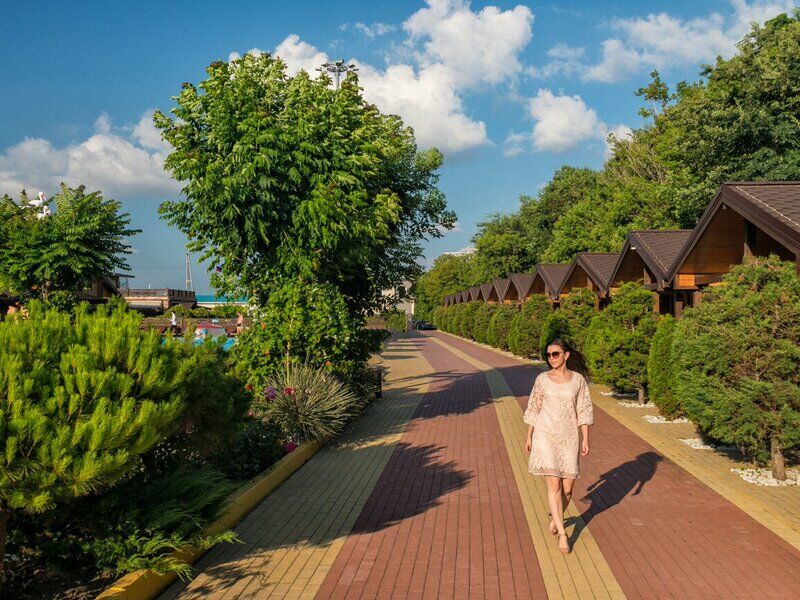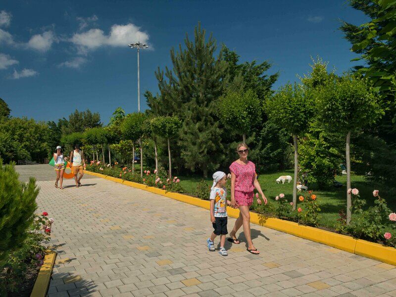Отель «Золотая бухта» расположен в центре Анапы у самого берега моря. Дорога до железнодорожного вокзала Анапы займет двадцать минут, до аэропорта можно добраться за полчаса.