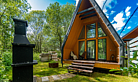 Вокруг домиков находится лес, можно собирать грибы. От детской площадки можно пройти по деревянной дорожке по лесу к небольшой речке.