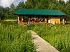 Возможность размещения 12 - 16 палаток. Есть крытая веранда — кухня-столовая на берегу с видом на закат, доступны газ, мангал, печка с казаном, а также 2 причала. Гостям доступны: купальня с песчаным заходом и пляж–понтон, питьевая вода из скважины, 2 деревянных туалета, обустроенный летний умывальник, душ с подогревом, дровяная баня, две лодки, сап. Возможна доставка фермерских продуктов в кемпинг по запросу, а также организация трёхразового питания, походов, экскурсий, мероприятий, включая мастер-классы, программы для детей и взрослых.