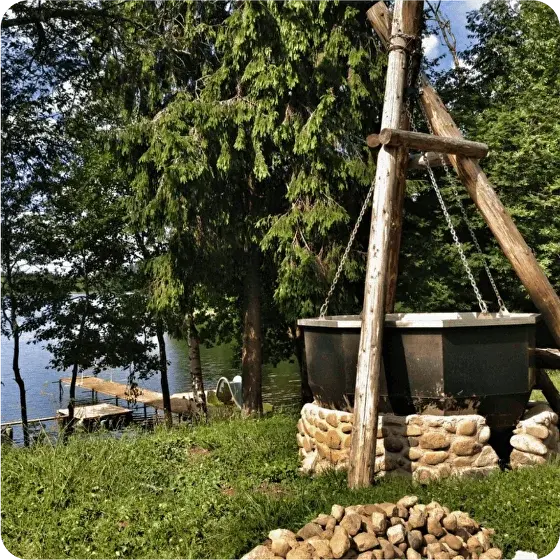 Банный комплекс находится прямо над озером. Русская баня с печью из талькохлорита разогреет, хамам расслабит, кедровая бочка пропитает силой Сибирского кедра, а купель освежит. А для особых ценителей у нас есть чан банника 1000 литров на костре!