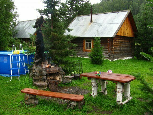 В каждом доме: три кровати, русская печь, столик, лавки, рукомойник. Удобства на территории.