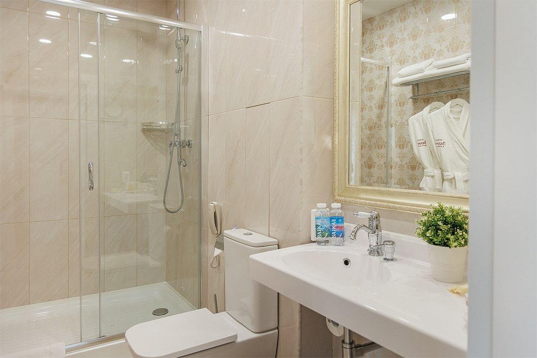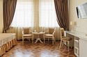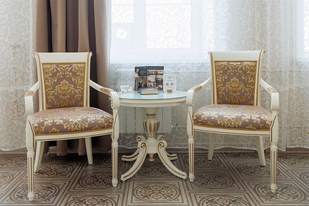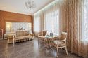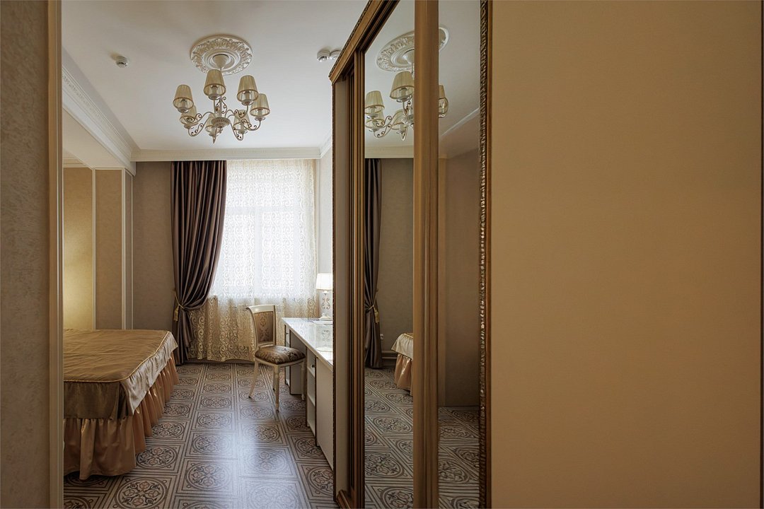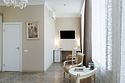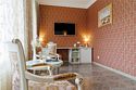 Изысканный однокомнатный номер в золотисто-бежевых тонах, выполнен в классическом стиле 19 века, площадью 30 кв. м., с элегантной классической мебелью, оснащенный всем необходимым для работы и отдыха.Услуги и удобства