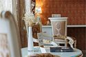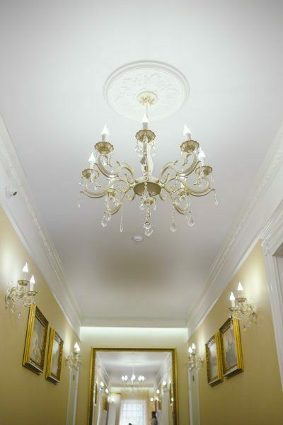 Выполнен в стиле 19 века в нежных тонах, украшен камином и картинами.