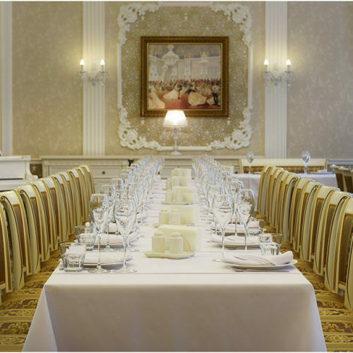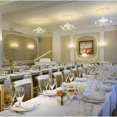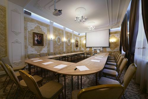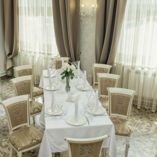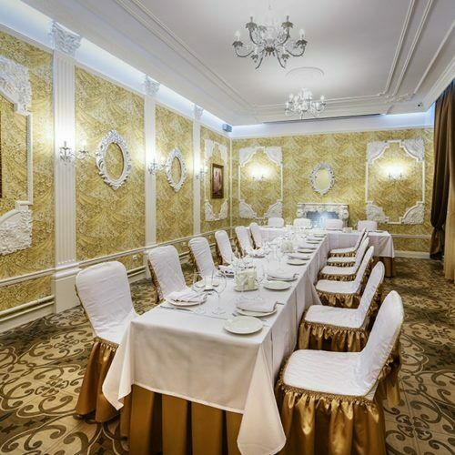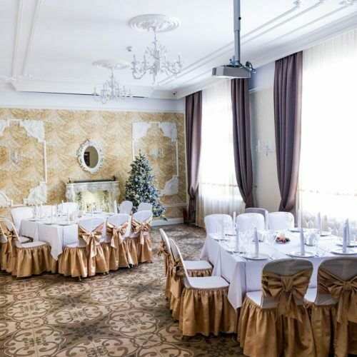 К услугам гостей Парадный зал на 100 посадочных мест, Банкетный зал на 35 мест, уютный Серебряный зал на 20 мест, а также оснащенный всем необходимым оборудованием Конференц-зал на 50 посадочных мест.