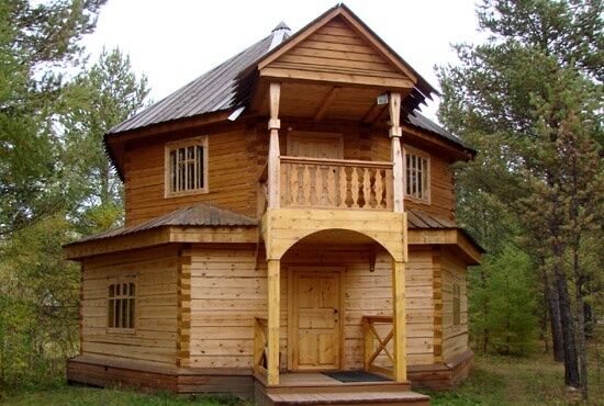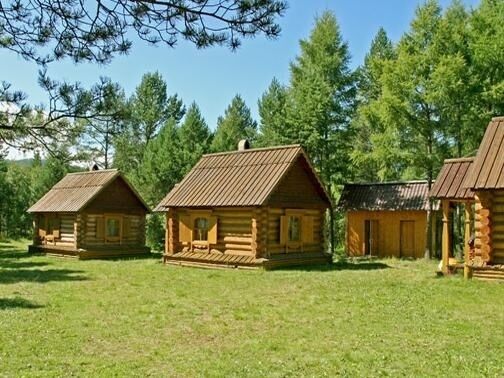 Три рубленых дома, построенных из кругляка с элементами пропильной и накладной резьбы, без использования искусственных материалов. Интерьеры домов стилизованы под русскую избу