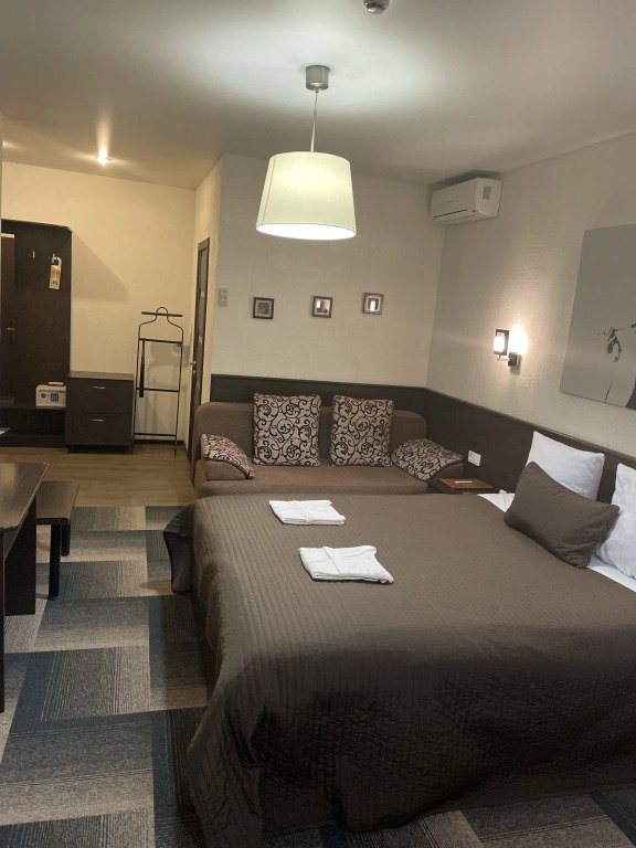 Чтобы вы могли отдохнуть после долгого дня, в номере есть телевизор и халат. Оснащение зависит от выбранной категории номера.
