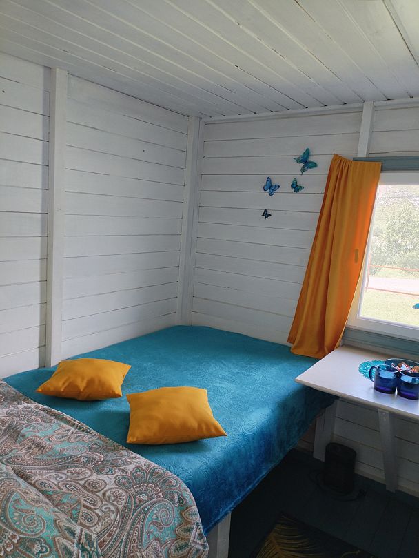 На небольшой кухне вы найдете микроволновую печь, плиту, холодильник, чайник, а также необходимую посуду. Дополнительно предоставляется мангал и решетки.