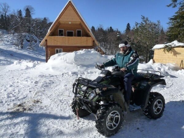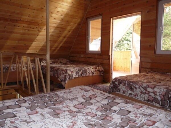 Отдыхающие могут расположиться в домиках коттеджного типа из сруба, вместимостью восемь-двенадцать человек. Посетители сами могут приготовить себе еду в кухонной зоне. Имеется газовая печь. Желающие могут отдохнуть в беседке, пожарить шашлык на мангале, попариться в бане на дровах, покататься на тюбинге. Организовываются обзорные экскурсии. Гости смогут увидеть пещеру Нежную, Большую Азишскую пещеру, Фишт. Возможен трансфер с вокзалов.
