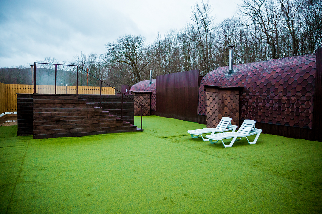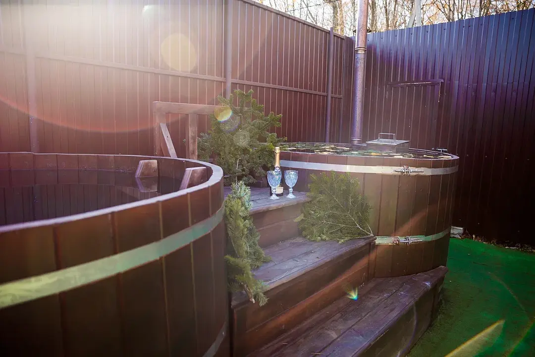 - 2 купели диаметром 2 метра, холодная и горячая на дровах;