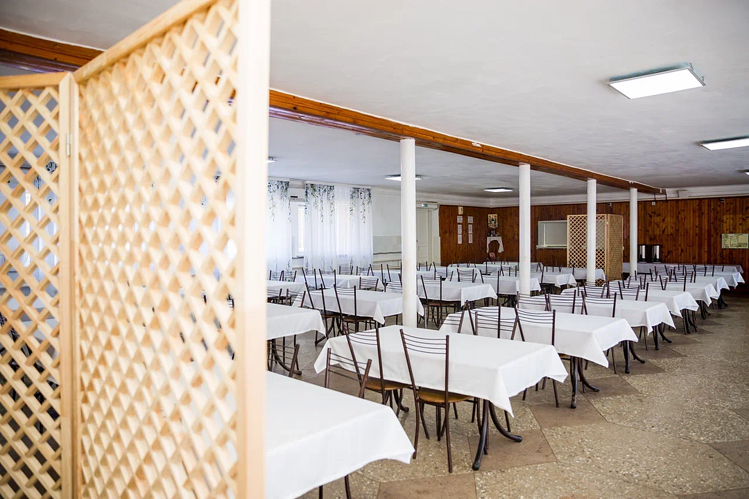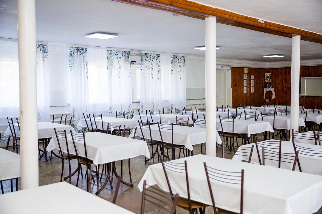 Питание предоставляется в нашей столовой-трапезной, оснащенной современным технологическим оборудованием и соответствующей всем санитарно-эпидемиологическим требованиям и нормам общественного питания.