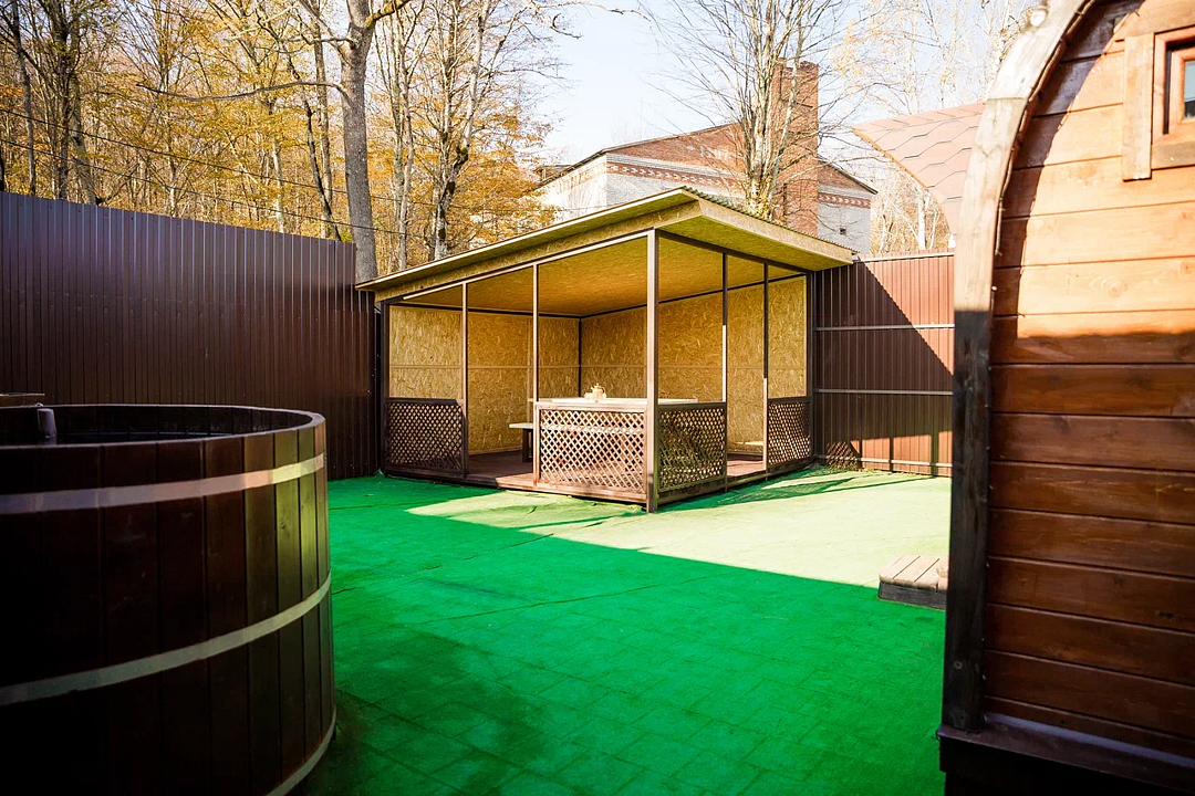 Инфраструктура: купельДва банных комплекса «Викинг» изготовленные в Вологодской области из настоящего северного леса и бережно доставленные к нам. Каждый комплекс уединен закрытой огороженной территорией для комфортного отдыха и оздоровления гостей: