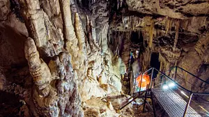 Читать полностьюАзишская пещера была обнаружена еще в 1911 г. По своим размерам входит в пятерку самых больших пещер в Европе. Длина ее составляет 690 м, из которых для осмотра оборудовано 220. Глубина пещеры — 37 м. Категория сложности 2А. Пещера находится в 10 км от нашей базы отдыха.