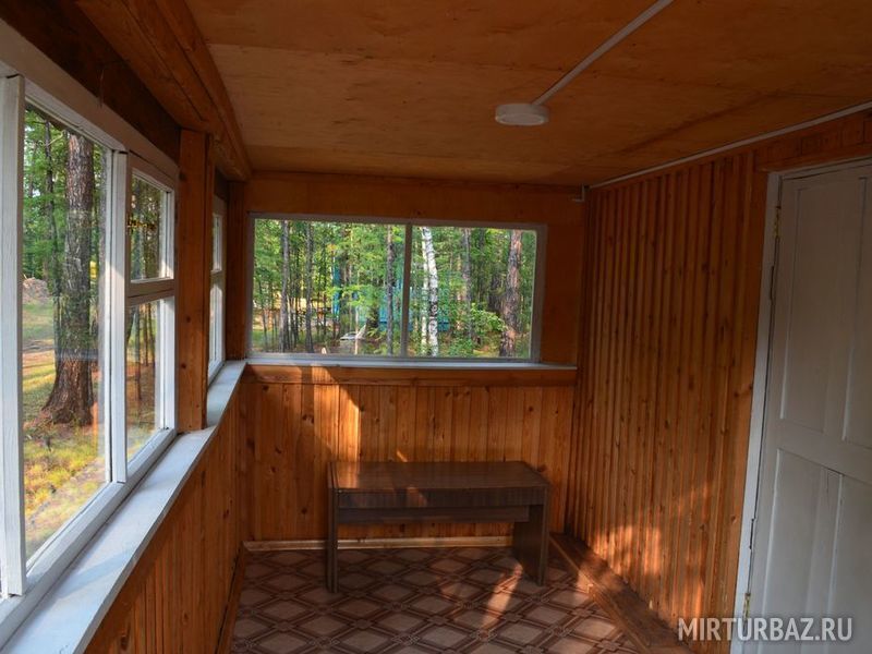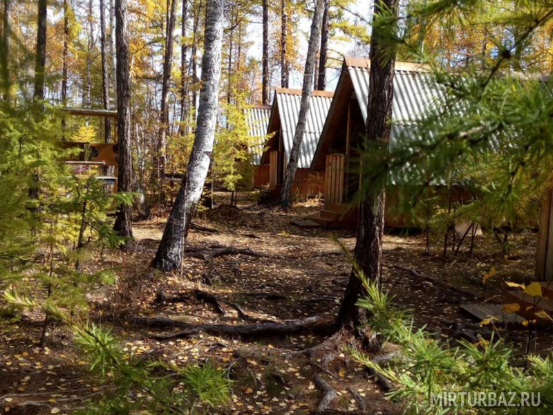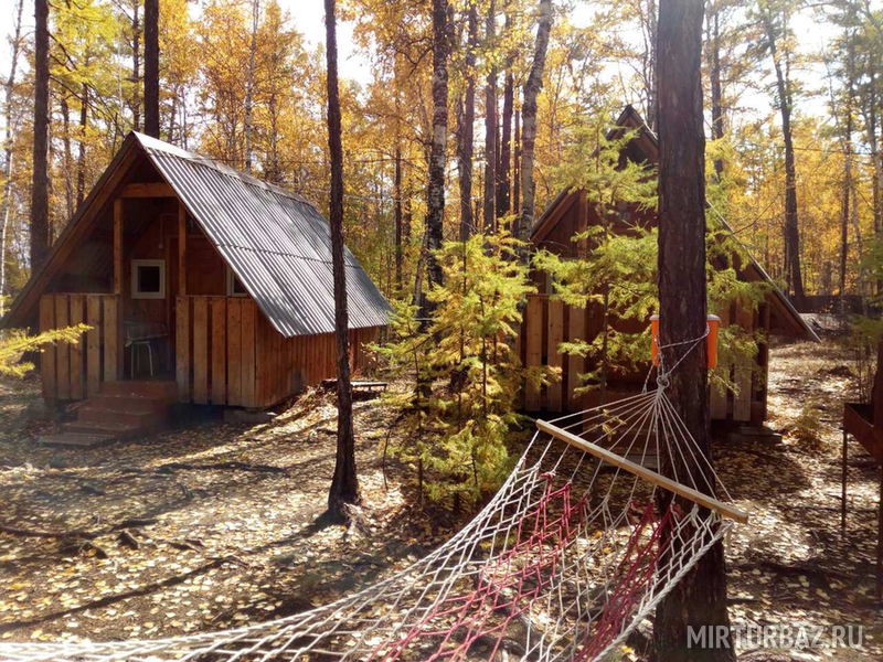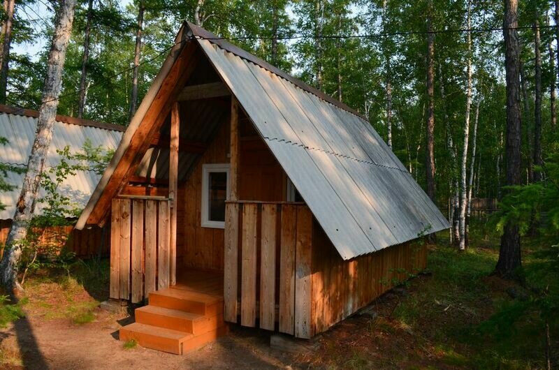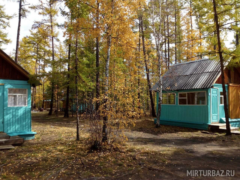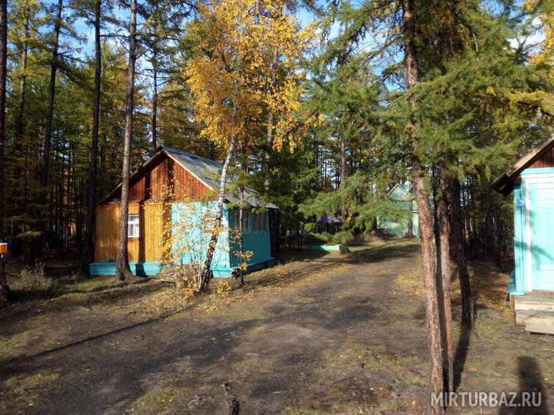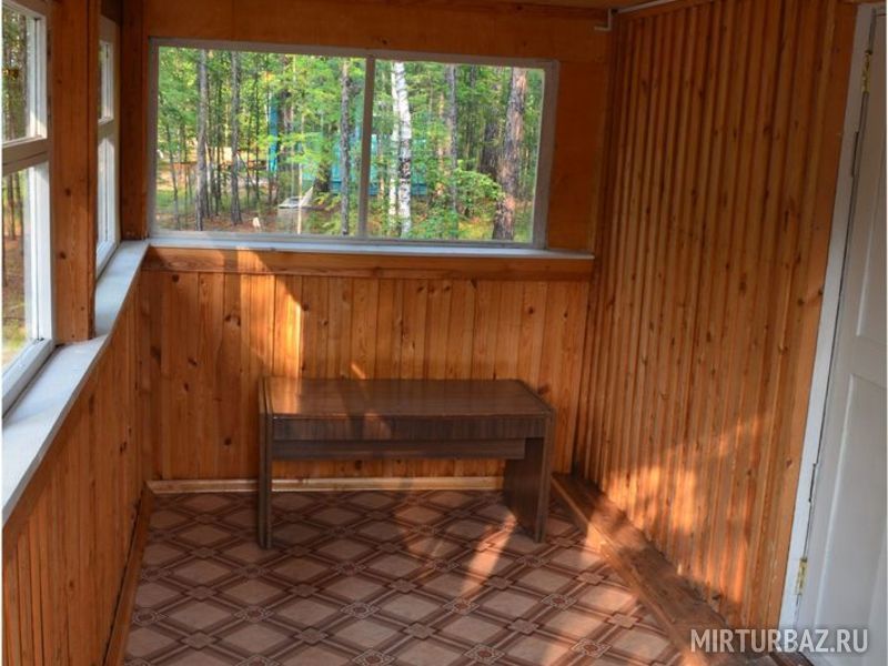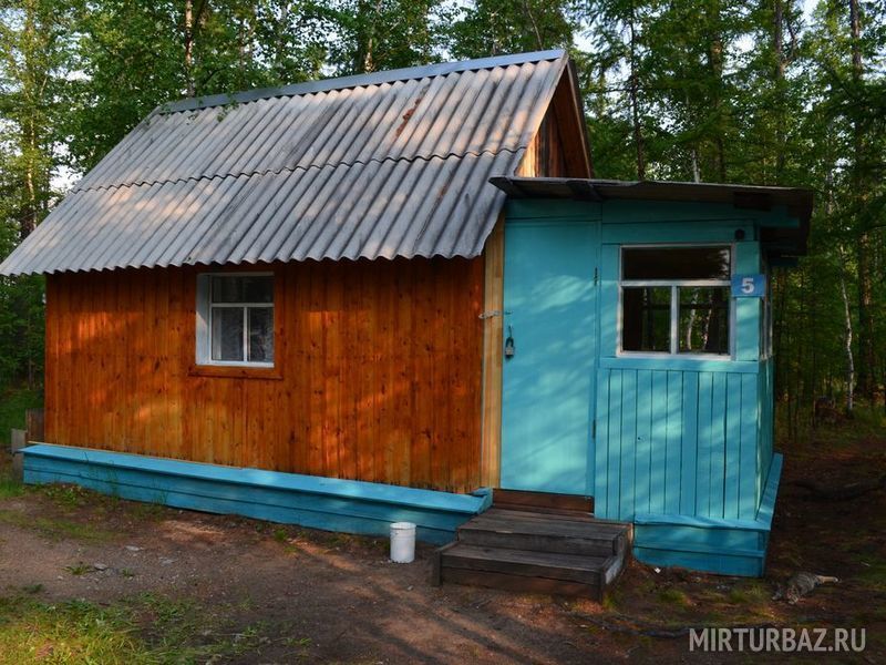 Терраса, спальня с односпальными кроватями. На территории: летний душ, туалеты, умывальники. Постельное белье включено в стоимость.Уютный бревенчатый домик.Днем здесь прохладно а ночью тепло.На базе находится пять таких домиков.Цена указанна за сутки проживания за одно место.