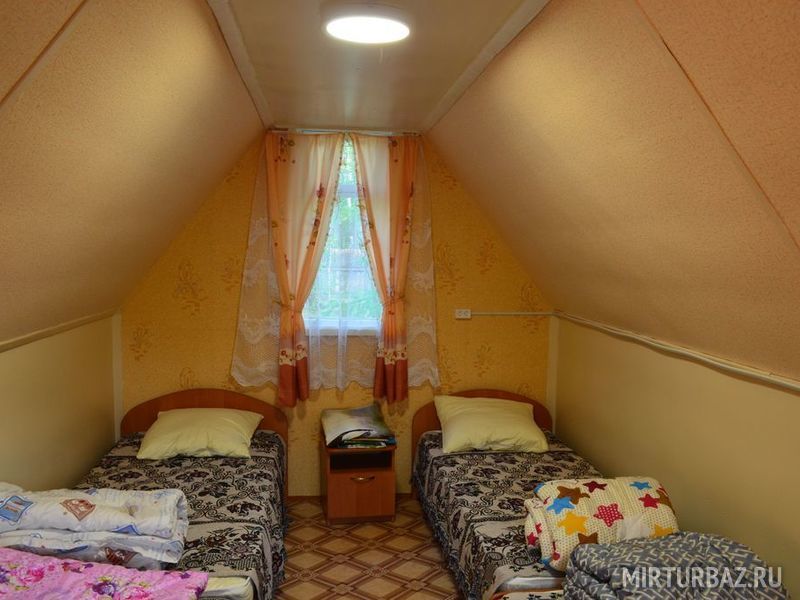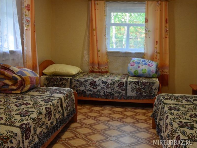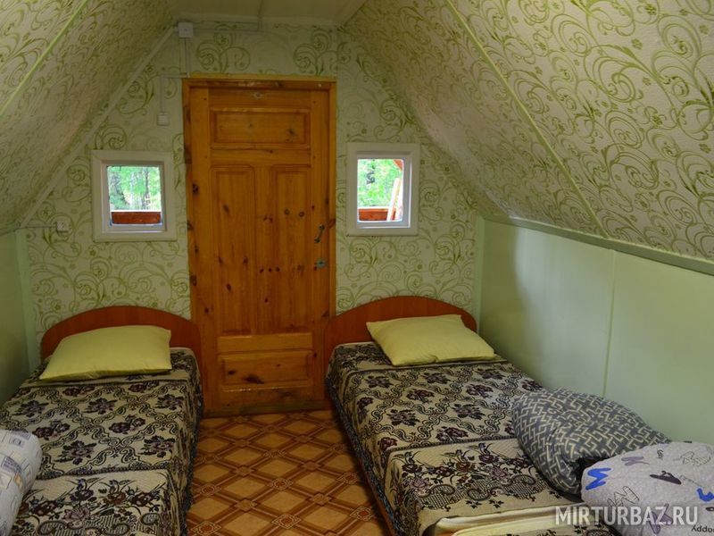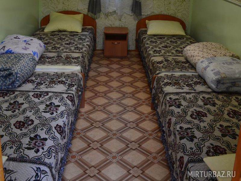 Спальня с односпальными кроватями. На территории: летний душ, туалеты, умывальники. Постельное белье включено в стоимость. Цена указанна за сутки проживания за одно место.