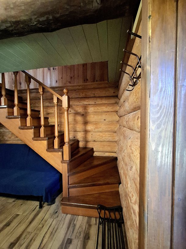 Двухэтажный бревенчатый домик, с собственной беседкой и мангальной зоной, рассчитанный до 8 человек.