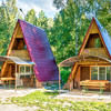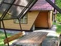 - Домики с удобствами вместимостью до 6 человек. Домики этой категории выполнены из бруса.